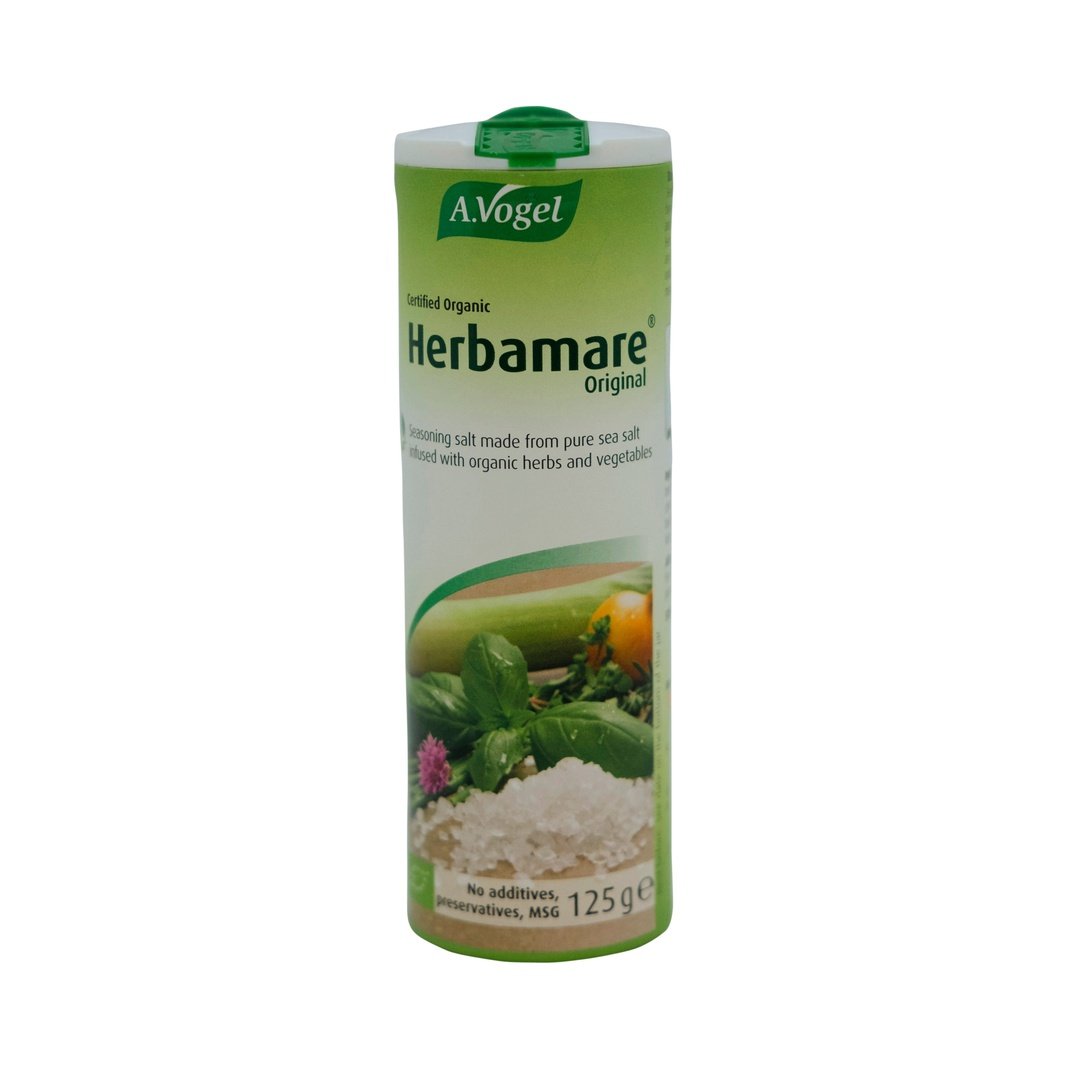 Far more than a simple mixture of salt and dried herbs, Herbamare is made from a recipe developed by renowned Swiss naturopath Alfred Vogel that transfers the flavours of a dozen fresh herbs and vegetables to the salt itself. The process takes place at A. Vogel’s facility in rural Colmar, France, where organically grown herbs from the surrounding fields are blended with sea salt just hours after being picked. The ingredients then steep together for up to a full year before being vacuum-dried and blended again to make a fine, free-flowing seasoning with a flavour so intense it satisfies even with very moderate use