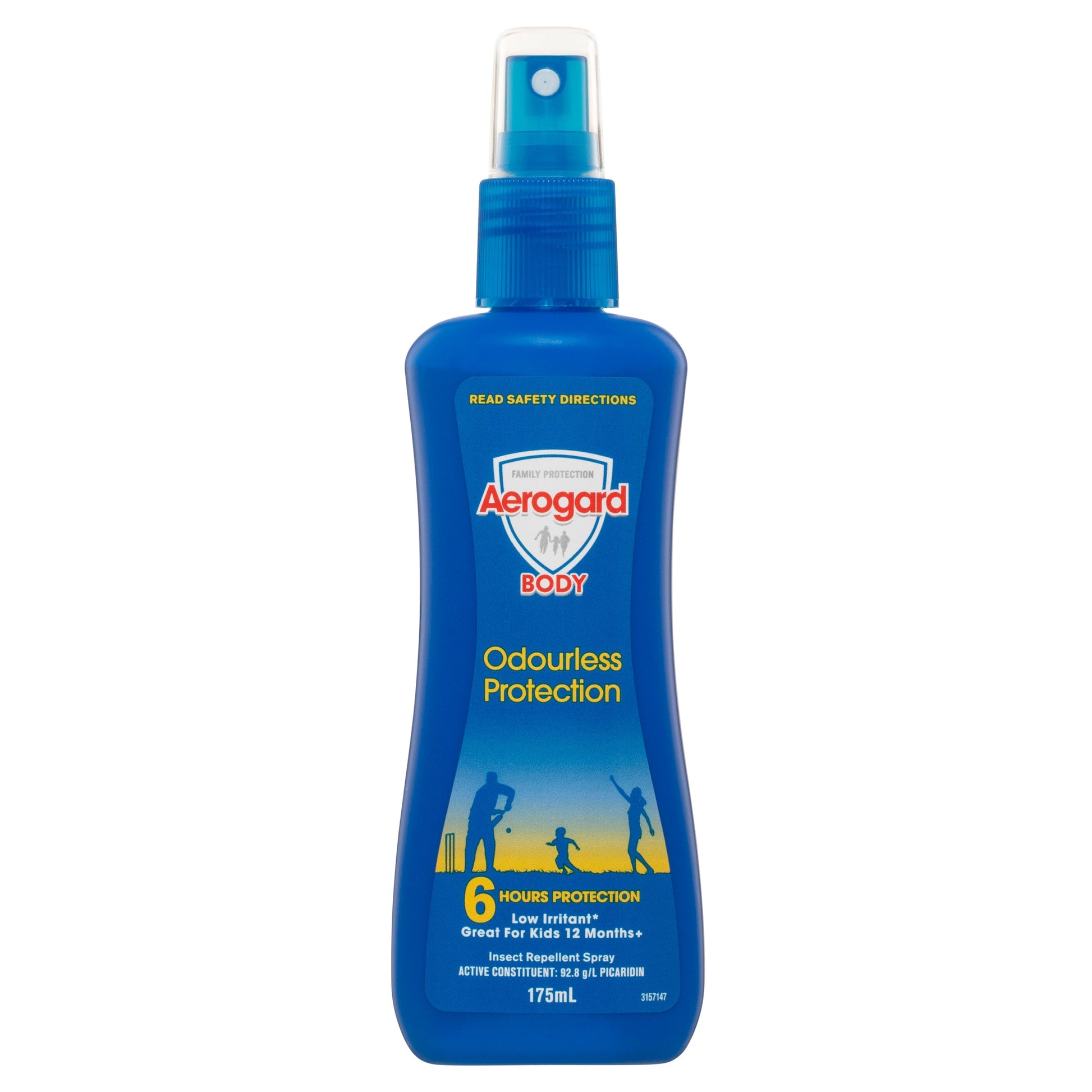Aerogard Odourless Protection Insect Repellant Spray is low irritant and protects you for 4 hours.