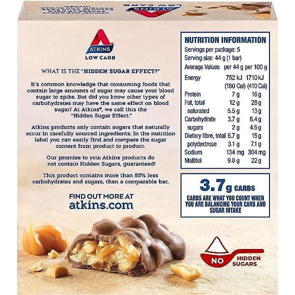 Indulge in a guilt-free treat with the Atkins Caramel Chocolate Nut Roll 5 Pack. Each roll offers a delicious blend of crunchy nuts, layered with caramel, all covered in a decadent chocolate coating. This five-pack provides plenty for those with a sweet tooth and each roll contains only 1 gram of sugar per serving.