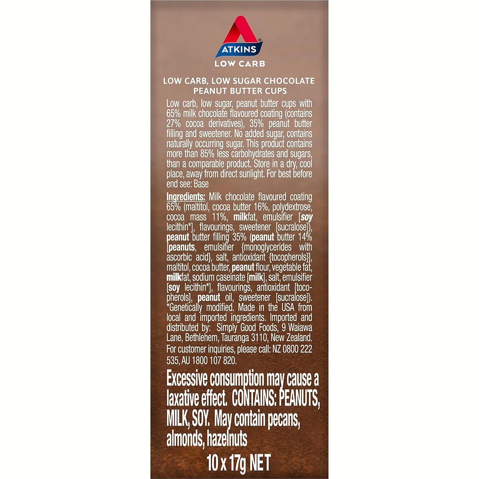 Enjoy the delicious taste of Atkins Peanut Butter Cups without guilt. This 10-pack contains 17g of protein per cup, making it a great snack for those looking to snack smart. Perfect for fitness enthusiasts and health-conscious eaters, they provide an indulgent treat free of added sugar and preservatives.