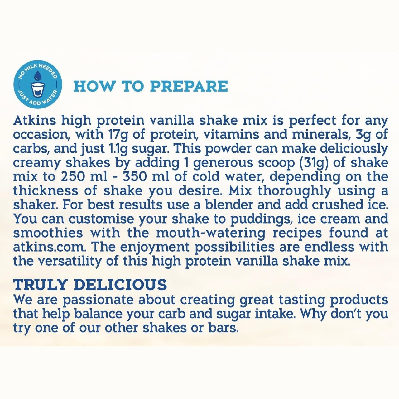 Atkins Powdered Shake Mix Vanilla 310g is the ideal solution for meal replacements and snacks. It is low in sugar and high in protein, with 20g per serving and 17 vitamins and minerals to keep you fueled throughout the day. Enjoy a delicious shake that is ready in less than a minute.