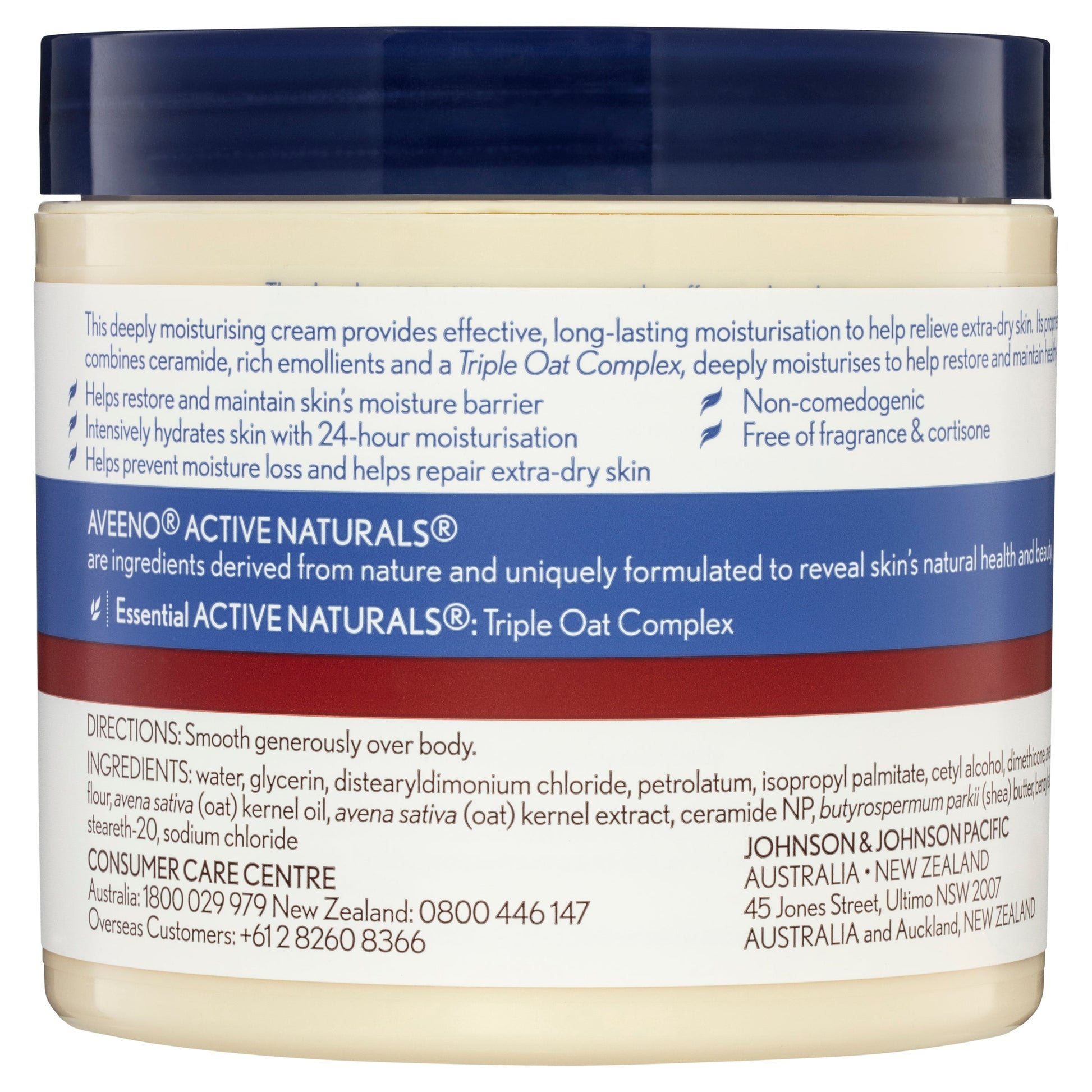 Aveeno Skin Relief Intense Moisture Repair Cream for Very Dry Skin helps to restore and maintain the moisture barrier of extra-dry skin.This deeply moisturising cream provides effective, long-lasting moisturisation to help relieve extra-dry skin. The body moisturiser's proprietary formula, which combines ceramide, rich emollients and a Triple Oat Complex, deeply moisturises to help restore and maintain healthy-looking skin.