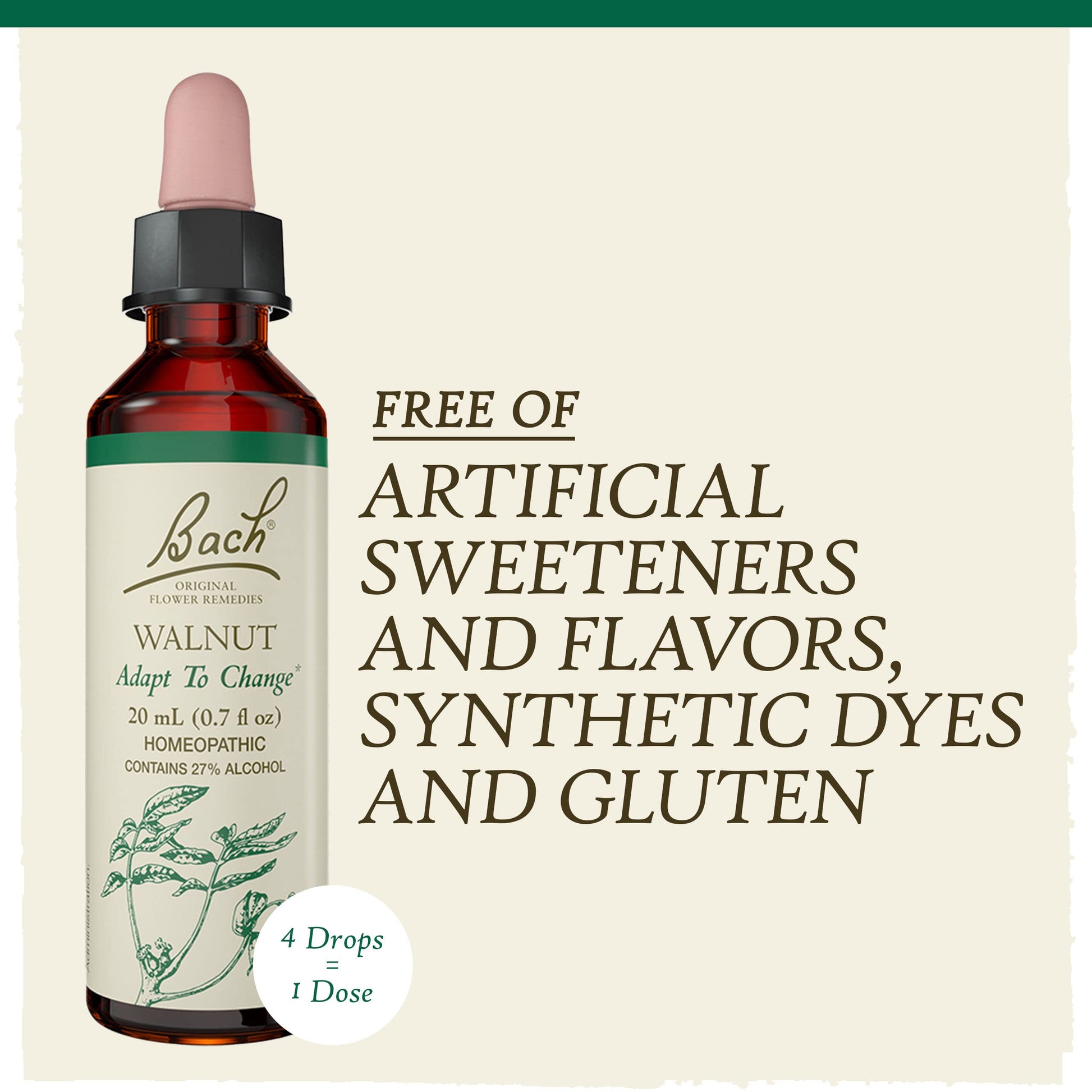 Adapt To Change. The Bach® remedy Walnut may encourage the positive potential to move forward and make changes in your life with a sense of constancy. Life is full of change. Instead of being taken off guard, support your mind in learning to adapt. Whether it’s physical, environmental, or influential, move forward in life with a sense of consistency.