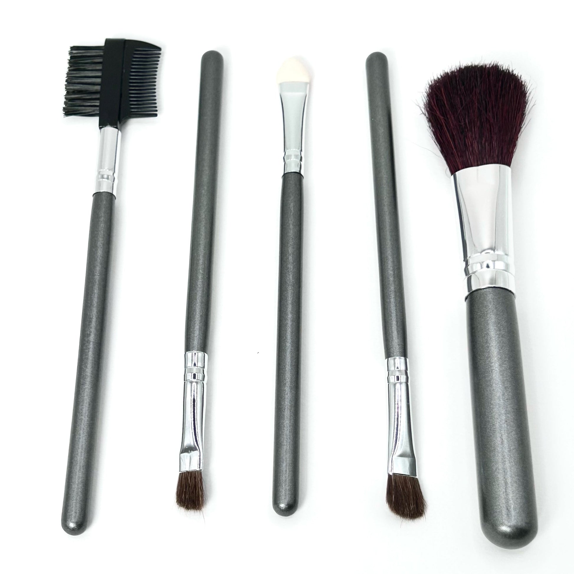 Lip Liner - natural bristles, perfect point Eye Shadow Brush - dome-cut, natural bristles for powdered eye shadow Sponge Applicator - for graduating eye shadow Blusher Brush - natural bristle highlighter Eyebrow and Eyelash Groomer - separates and styles.