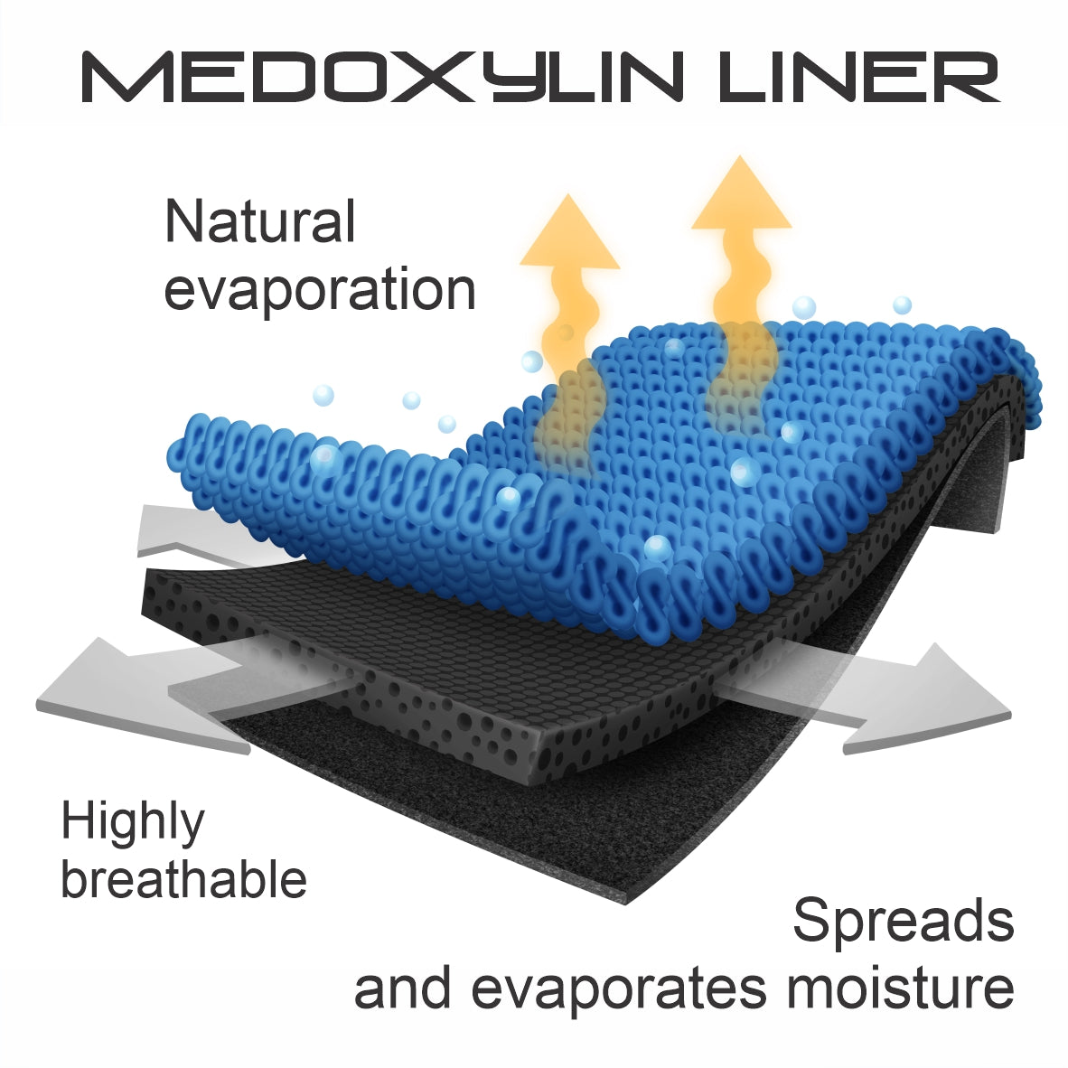 - Medoxylin liner provides thermal insulation, moisture draw capacity and air circulation to keep skin well oxygenated and comfortable.