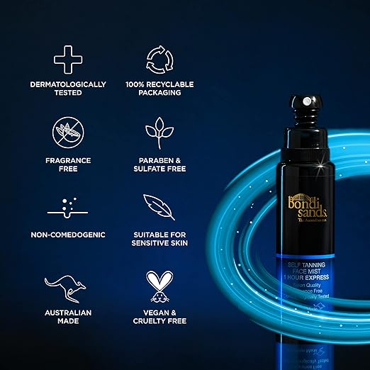 Suitable For: Time-poor tanners who want to achieve the Bondi glow in an hour. Dermatologically tested. Suitable for sensitive skin. Non-comedogenic - won't clog pores.