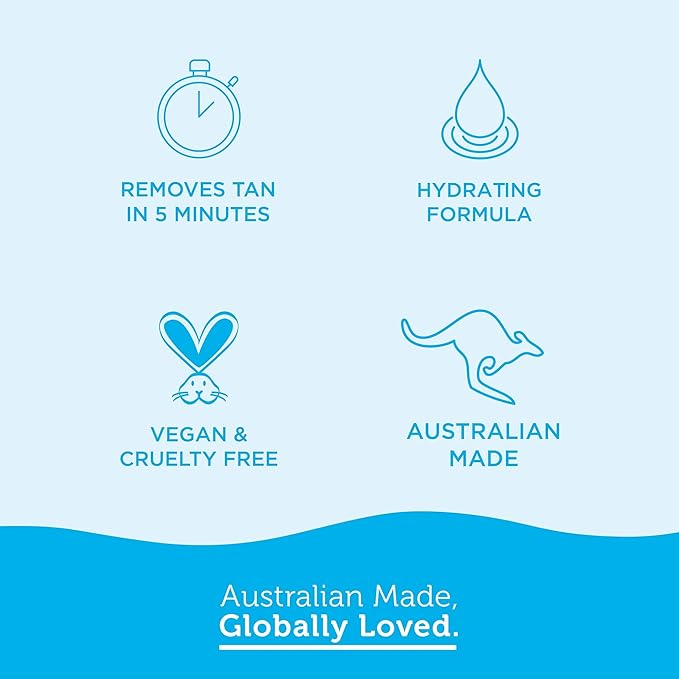 Shower with warm water using a wet face cloth to wipe away the tan. For more stubborn areas or dry skin, use the Bondi Sands Exfoliating Mitt to gently remove the tan.