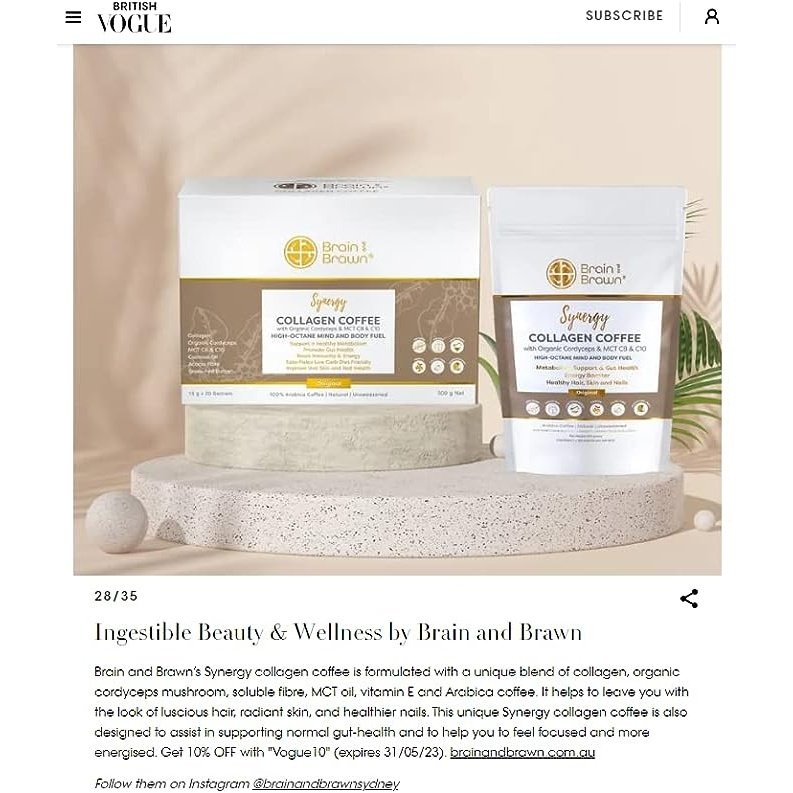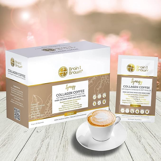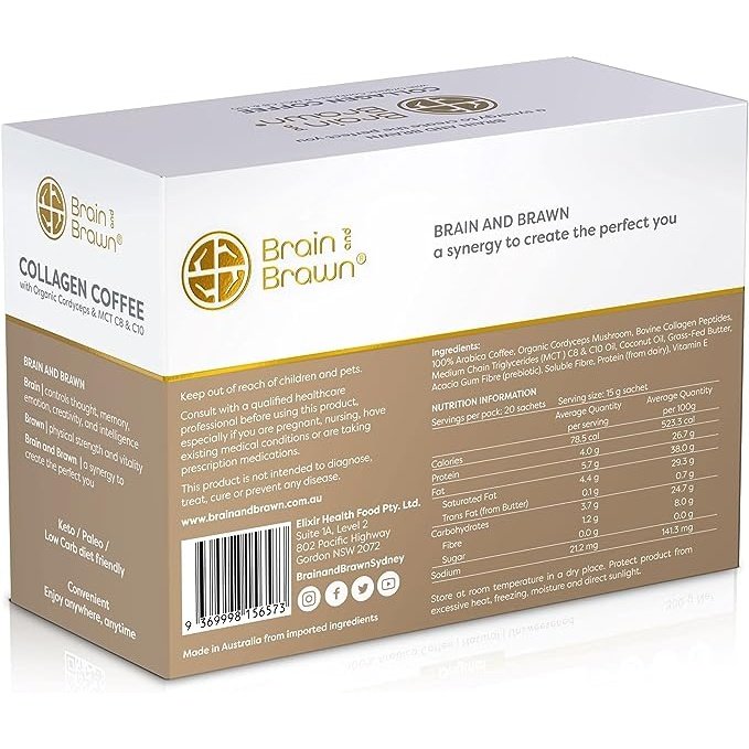 Brain and Brawn Collagen Coffee Synergy (Organic Cordyceps & MCT C8 & C10) Sachets 15g X 20 Pack