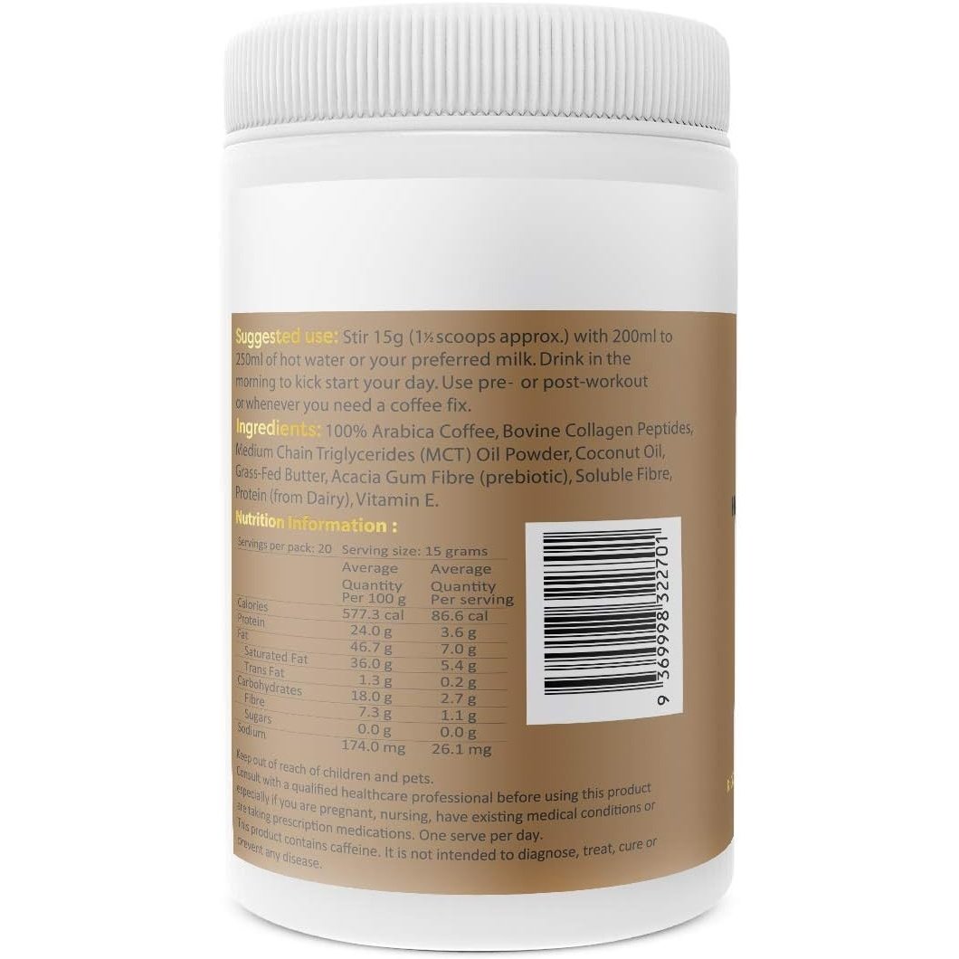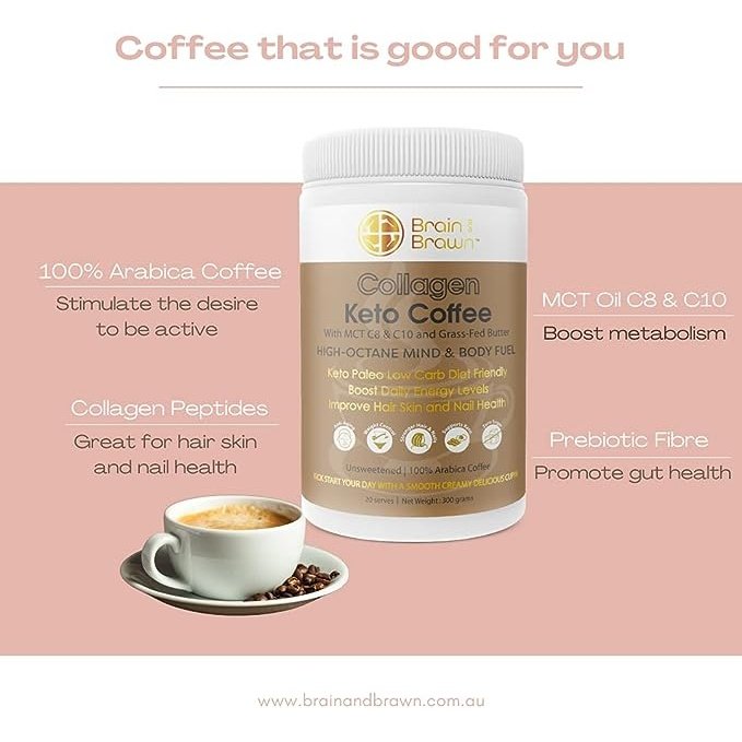 Brain and Brawn Collagen Keto Coffee (With MCT C8 & C10 and Grass-fed Butter) Unsweetened 300g