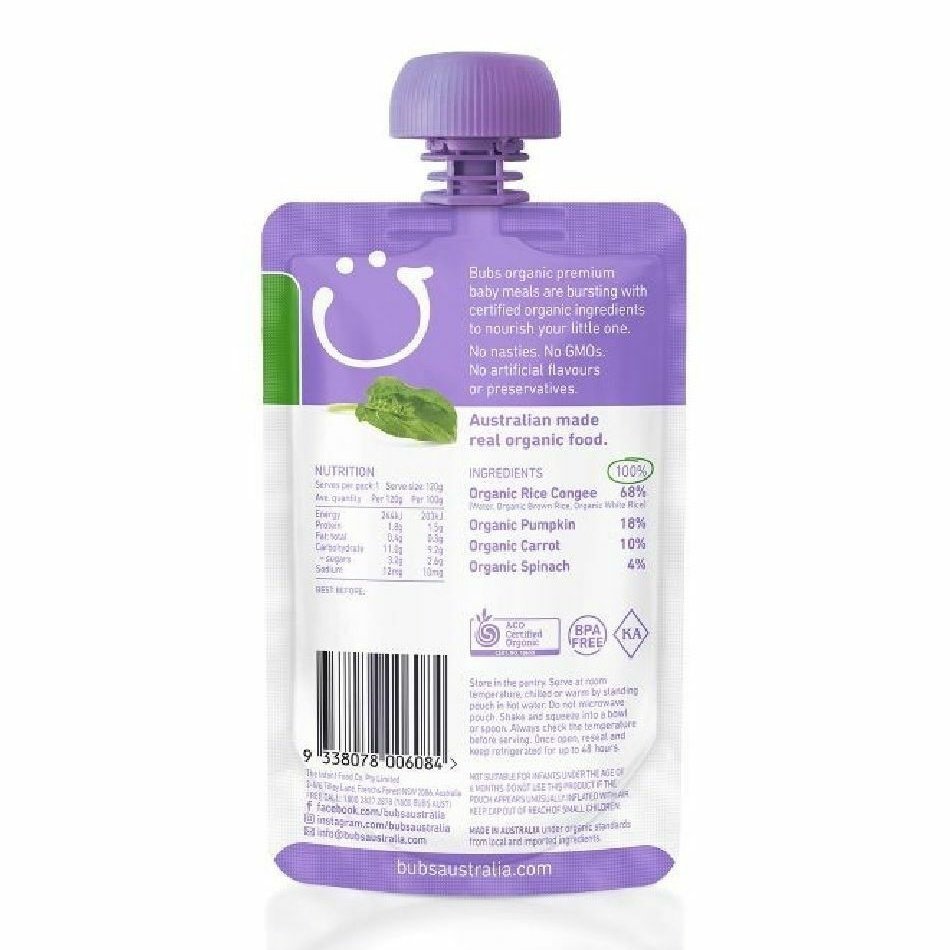 Bubs Organic Super Vegetable Rice Congee Pouch 120g X 6