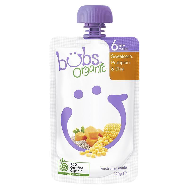 Bubs Organic Sweetcorn, Pumpkin & Chia is bursting with certified organic ingredients. No nasties. No GMOs. No artificial flavours or preservatives.