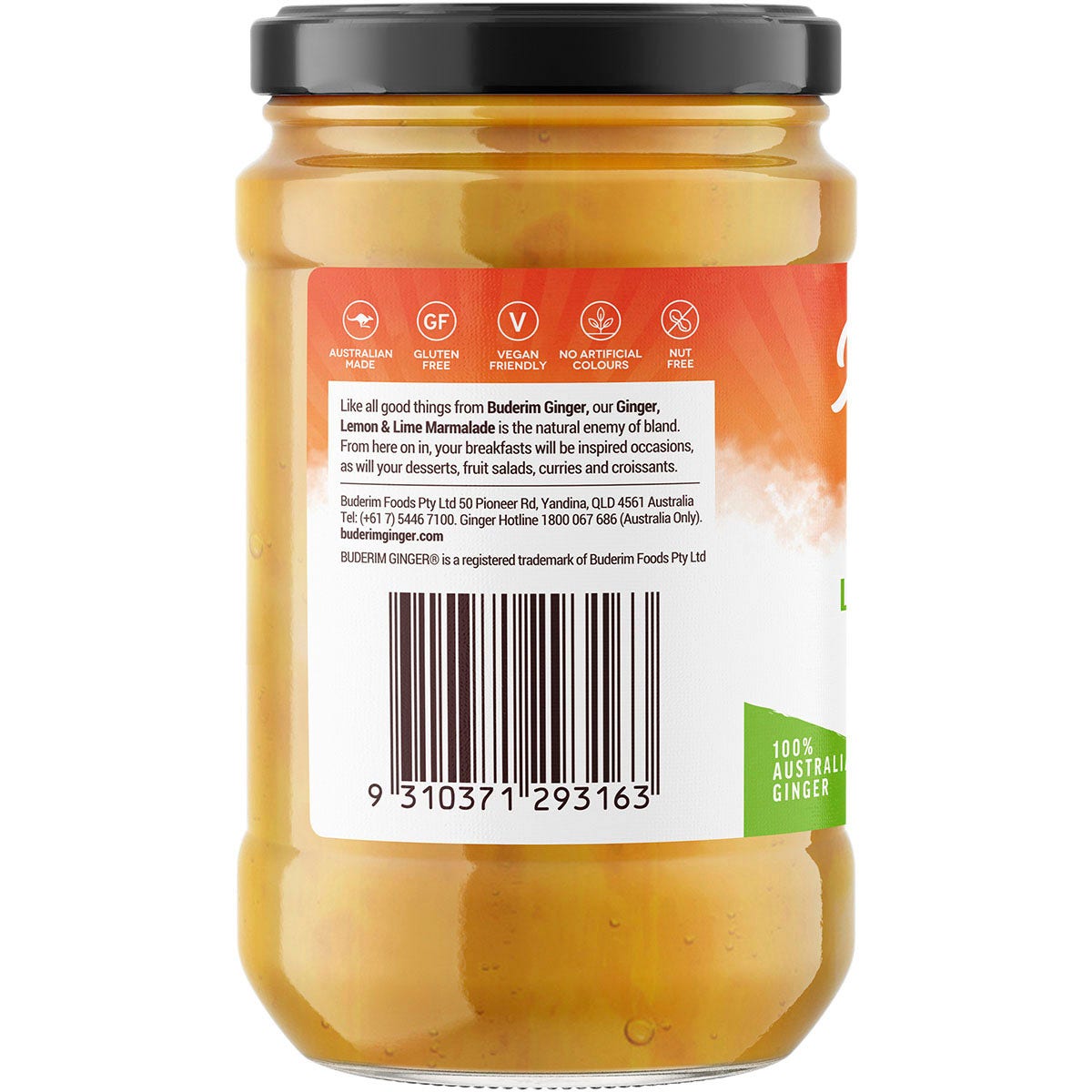 Indulge in the zesty and refreshing taste of BUDERIM GINGER Ginger Lemon & Lime Marmalade. Made with real ginger and a burst of citrus flavors, this 365g jar of marmalade offers a delicious and unique spread for your breakfast toast or afternoon tea. Add a spicy kick to your meals with BUDERIM GINGER.