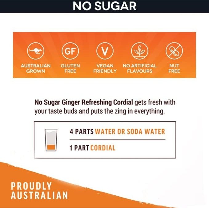 Experience the refreshing taste of BUDERIM GINGER Ginger Refresher with our new No Sugar Cordial. Made from pure ginger and without any added sugar, this cordial is perfect for those looking for a healthier option without compromising on taste. Quench your thirst and boost your health with every sip.