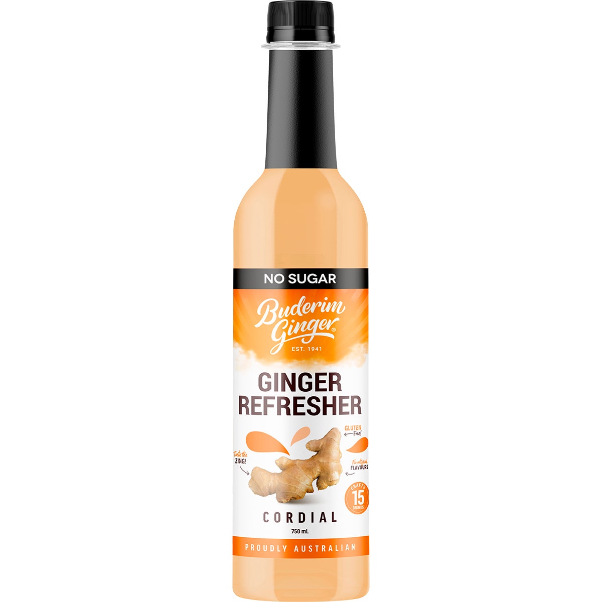 Buderim Ginger Ginger Refresher No Sugar Cordial 750ml