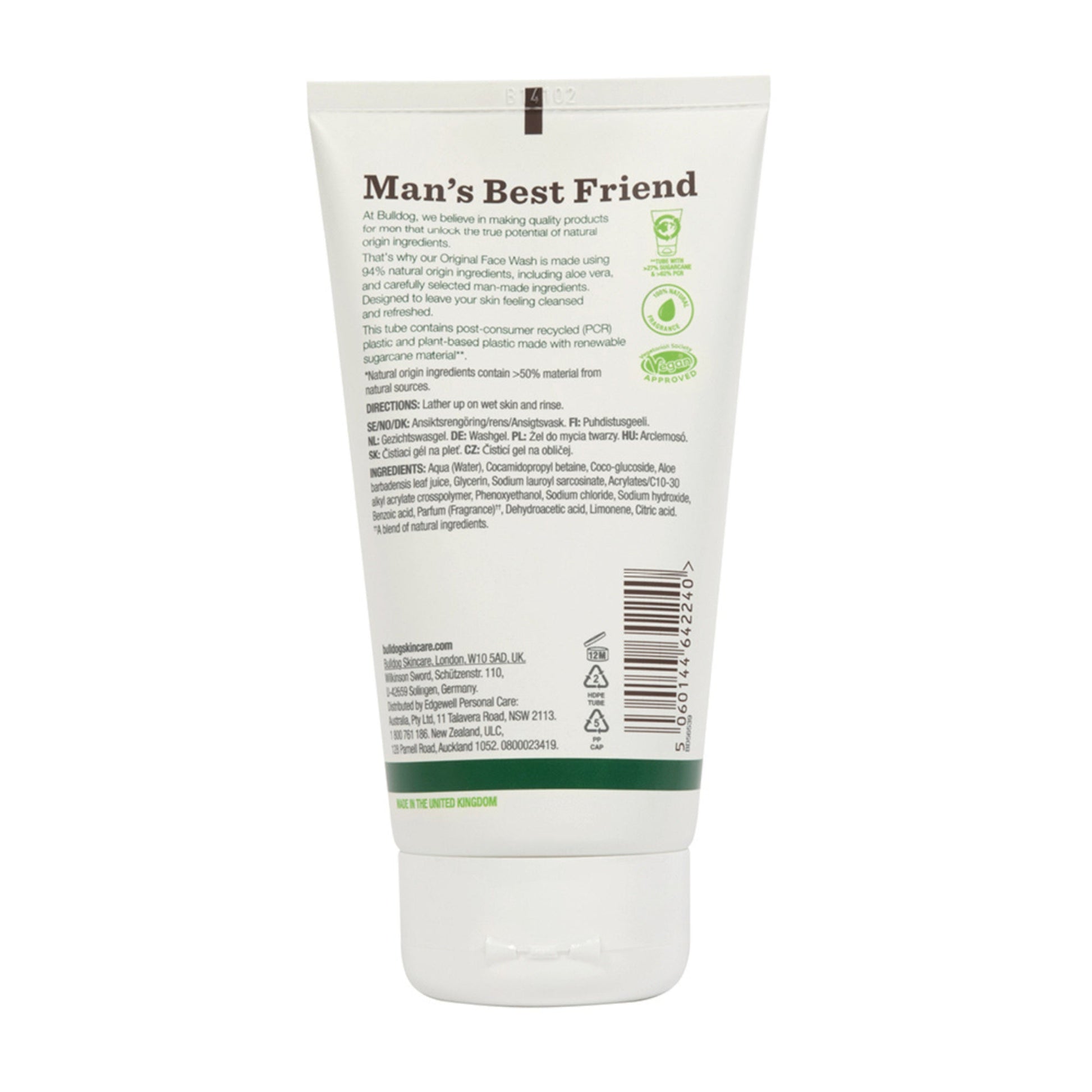 Bulldog Original Face Wash contains Aloe, Camelina and Green Tea which helps maintain clean and clear skin. This face wash contains aloe vera, camelina oil and green tea. Specially formulated to leave the skin clear and clean. All our products are purpose built for men and contain amazing natural ingredients. Be loyal to your skin. Our products never contain artificial colours, synthetic fragrances, or ingredients from animal sources. Cruelty-free and Vegetarian Society Approved.