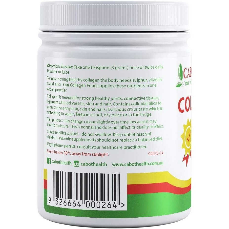 Cabot Health Collagen Food powder is formulated with ingredients to help your body make its own collagen. As we age, our collagen deteriorates, and we don't make as much new collagen as when we were young. Most collagen products on the market contain collagen from animals or marine life. Our Collagen Food powder is suitable for vegans and does not contain any animal products. Give your body the ingredients it needs to make healthy, strong collagen.