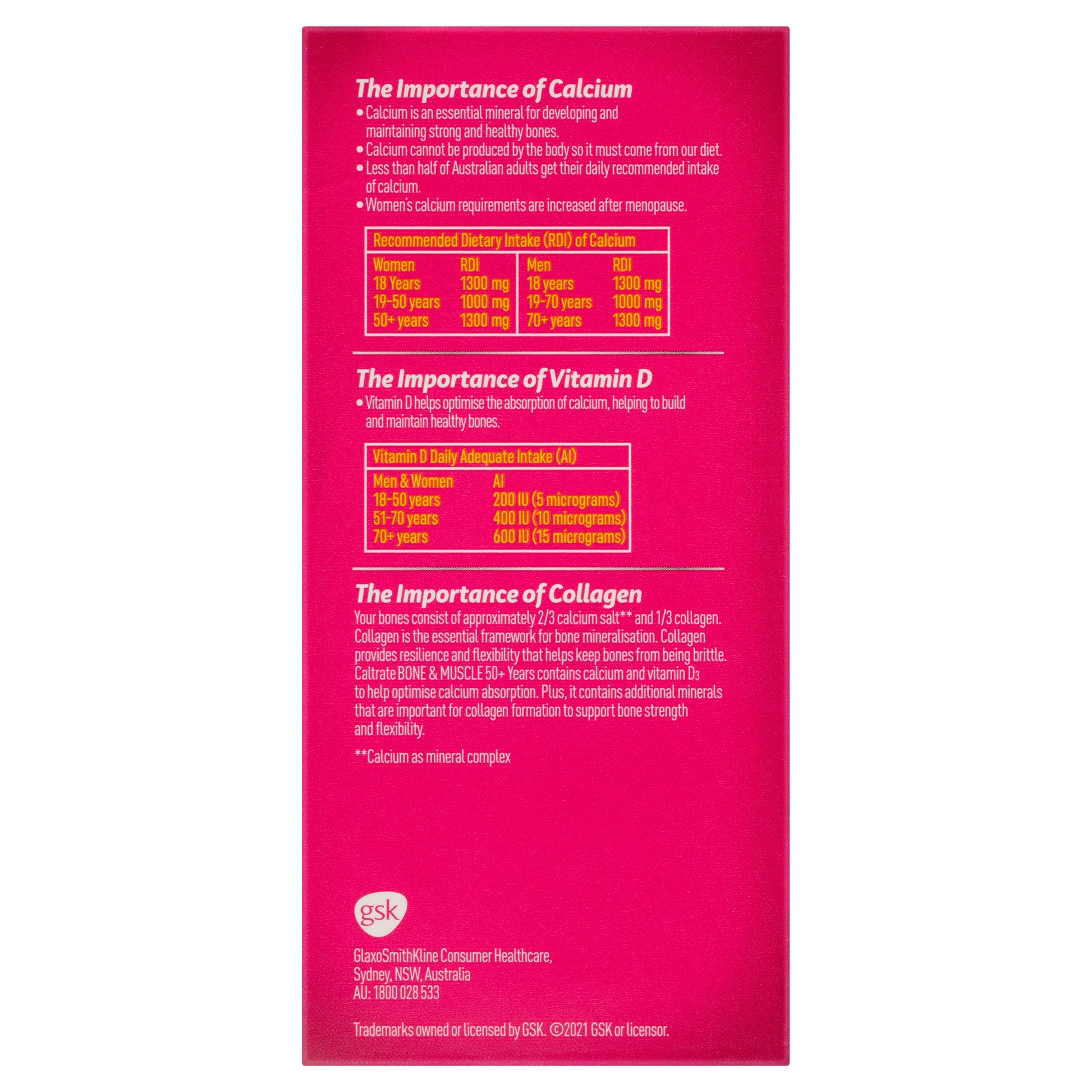 Caltrate Bone & Muscle 50+ Years is specially formulated to support the bone health of people over 50 years.