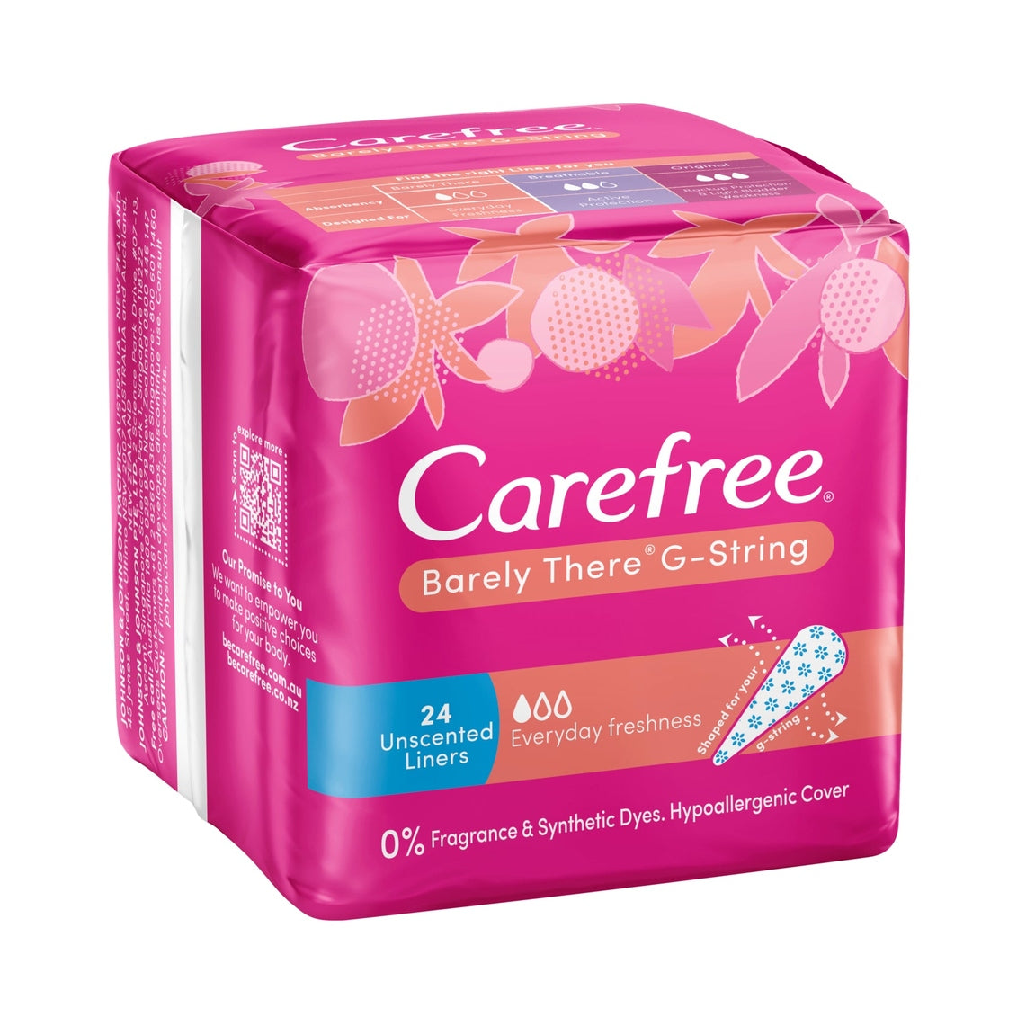 Carefree Barely There Liners Unscented are ultra thin & flexible for everyday freshness. Breathable Ultra Thin Liners Unscented Wear Carefree Barely There Breathable Ultra Thin Liners on all the days between your period to maintain that fresh underwear feel and to protect your favourite undies from light discharge. Change your liner not your undies during the day. - Breathable - Helps to keep you feeling fresh. - Feels soft & thin - As your favourite cotton underwear. - Highly flexible - Conforms to your body movements and can fold like wings to fit your g-string. |