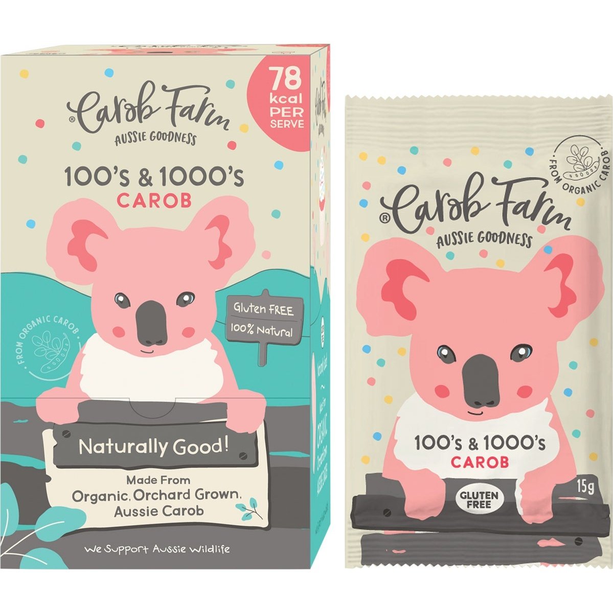 CAROB FARM's Carob Koala 100's & 1000's are a vegan-friendly indulgence made with real carob, coconut sugar, and amaranth sprinkles. A delicious treat with no artificial colors or flavors, each 15g packet contains under 9g of sugar. Perfect for snacking and baking.