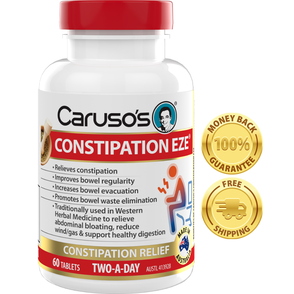 Caruso's Constipation Eze is an all-natural remedy specifically designed to relieve constipation. With a powerful blend of natural ingredients including guar gum, senna, apple pectin, and psyllium, these 60-second capsules effectively provide relief for up to 12 hours. Enjoy natural constipation relief with Caruso's Constipation Eze.