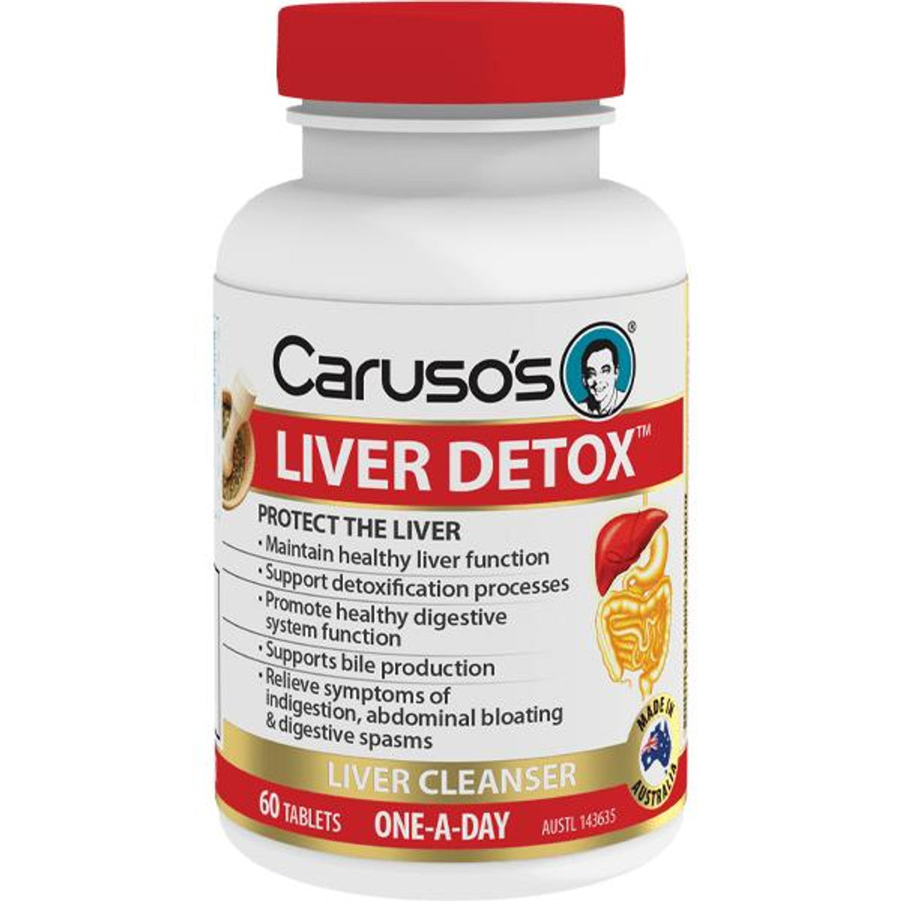 Some of the many roles your liver performs are to cleanse the body of metabolic toxins and eliminate unwanted wastes through the bowel. Caruso's Liver Detox has been formulated to help support the natural cleansing and detoxifying processes of the liver and other organs of the elimination process. It may help to support bile production and flow from the gall bladder and support overall digestive health and function, reducing some of the uncomfortable symptoms associated with dyspepsia. Caruso’s Liver Detox health indications: • Maintain healthy liver function • Support detoxification processes • Promote healthy digestive system function • Supports bile production • Relief of symptoms of indigestion, abdominal bloating and digestive spasms