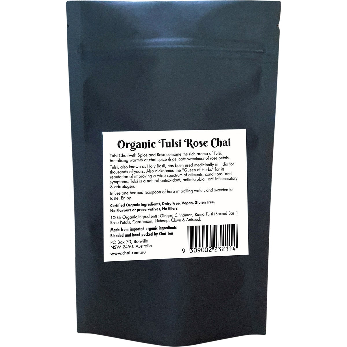 Discover the perfect balance of organic ingredients with our Chai Tea Organic Tulsi Rose Chai. Experience the soothing and aromatic blend of Tulsi and rose petals, providing potential benefits for both body and mind. Enjoy the rich and authentic taste of this 70g blend without any added artificial flavors or preservatives.
