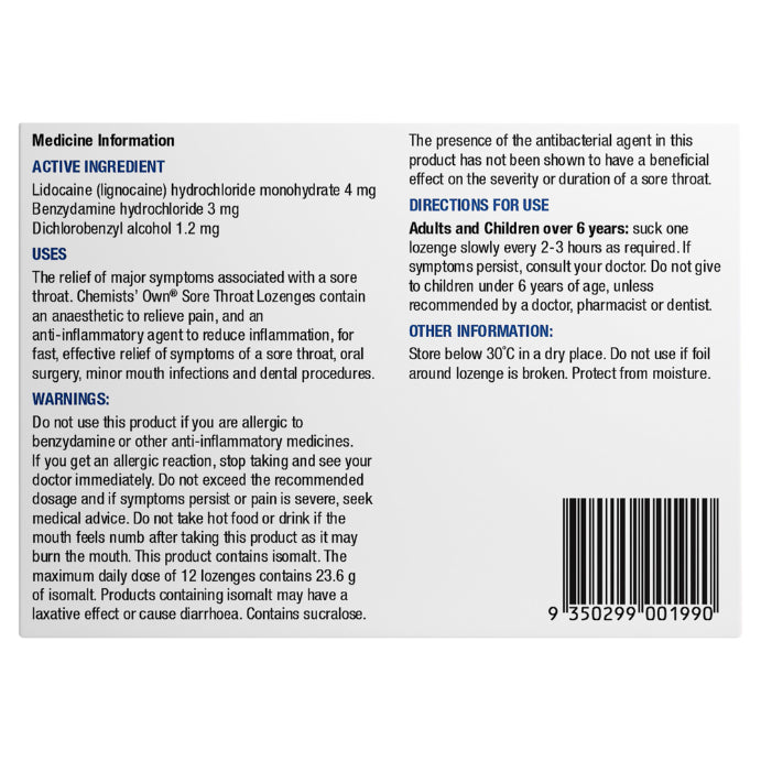 Chemists’ Own Sore Throat Raspberry 16 Lozenges