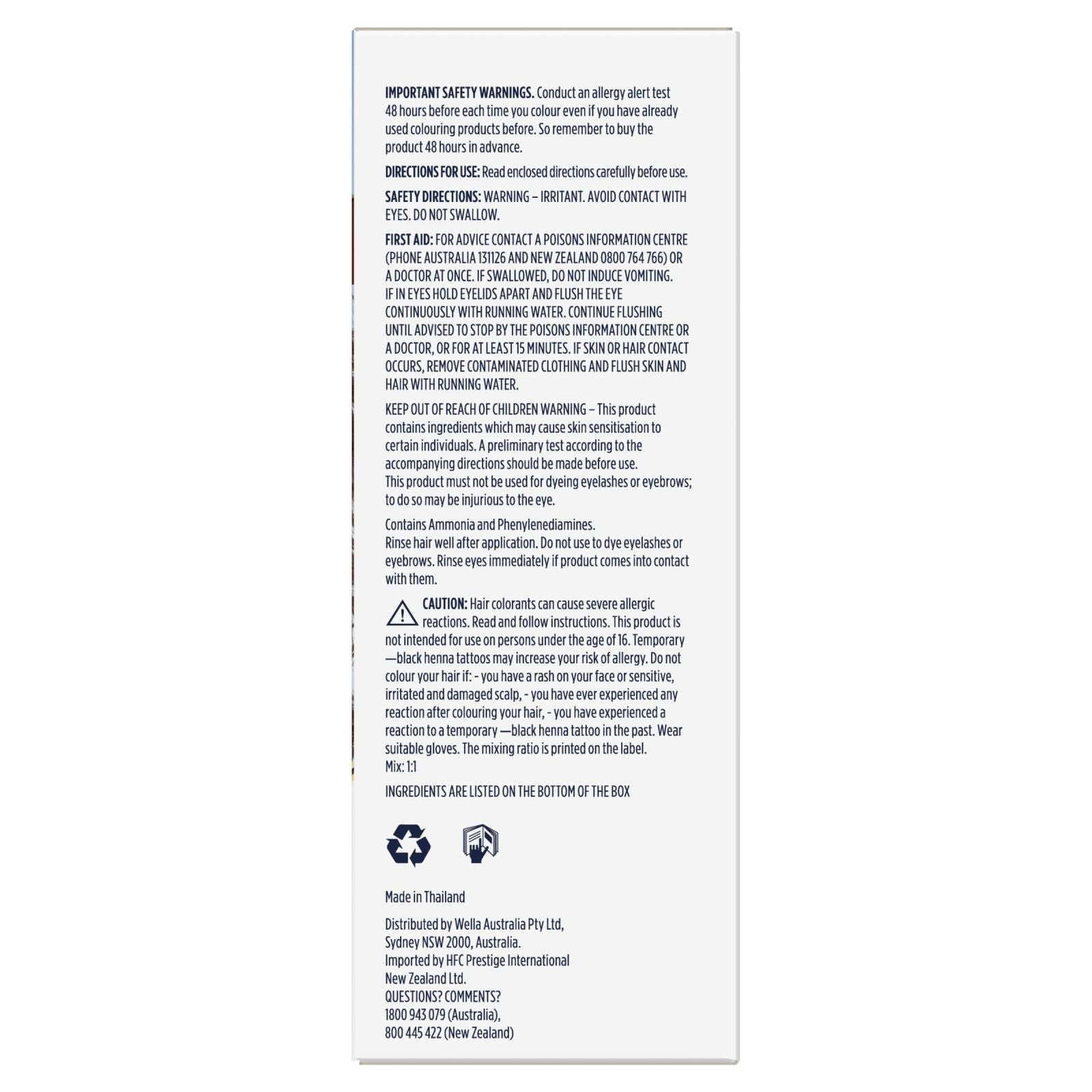 Read and follow instructions on enclosed leaflet. Can cause an allergic reaction - follow the safety instructions. Follow safety instructions perform allergy alert test 48 hours before colouring. Important safety warnings. Conduct an allergy alert test 48 hours before each time you colour, even if you have already used colouring products before. So remember to buy the product 48 hours in advance.Do not swallow. For external use only.