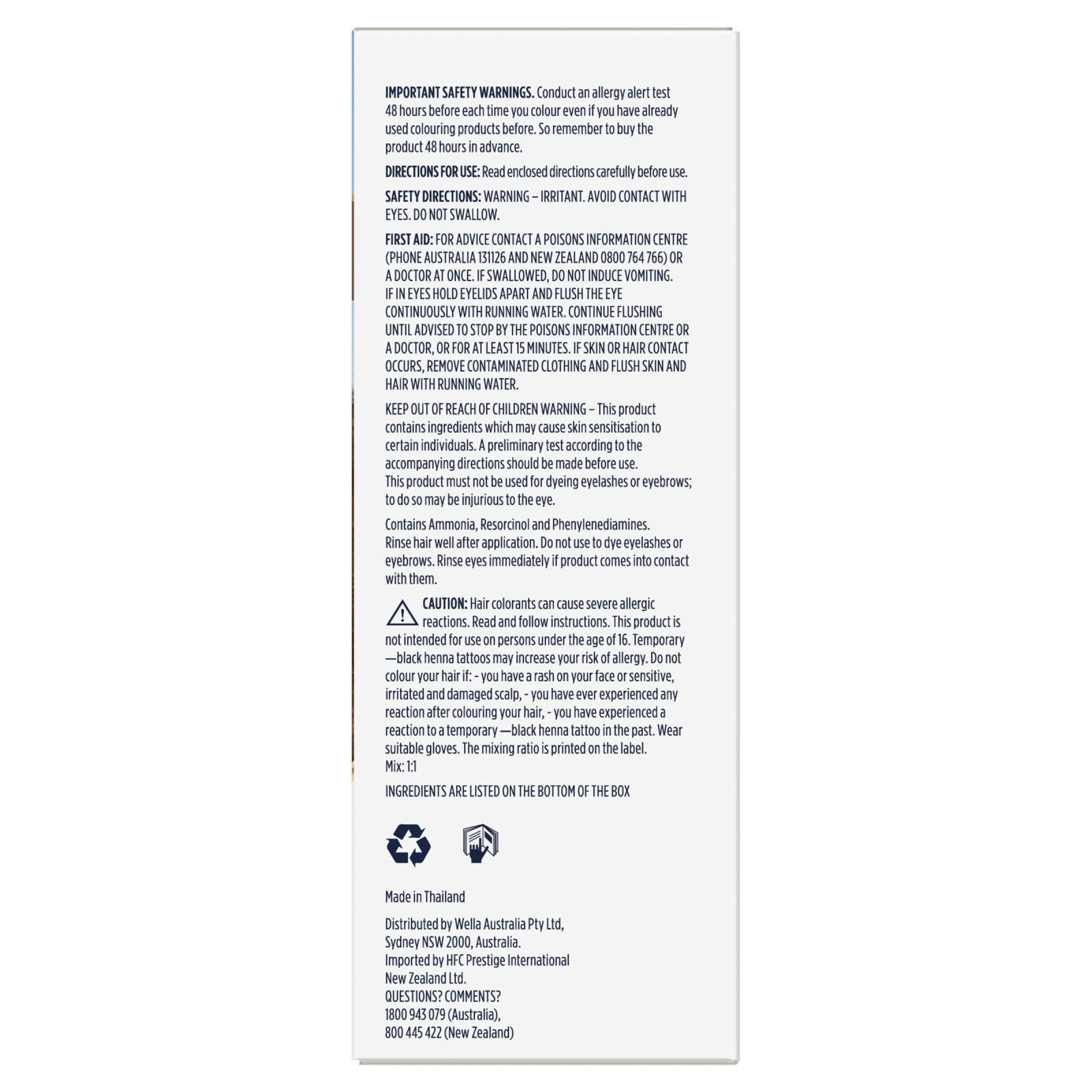 COLOUR-BLEND FORMULA: Aqua/Water/Eau, Ethoxydiglycol, Propylene Glycol, Isopropyl Alcohol, Soytrimonium Chloride, Oleth-5, Trisodium Ethylenediamine Disuccinate, Tall Oil Acid, Ammonia, Oleth-2, Parfum/Fragrance, C11-15 Pareth-9, Cocamidopropyl Betaine, p-Aminophenol, p-Phenylenediamine, C12-15 Pareth-3, Resorcinol, Citric Acid, Erythorbic Acid, 2-Methylresorcinol, N,N-Bis(2-Hydroxyethyll-p-Phenylenediamine Sulfate, 4-Amino-2-Hydroxytoluene, 1-Naphthol, Phenyl Methyl Pyrazolone, Sodium Sulfite, m-Aminophenol, Limonene, EDTA, Linalool, Citronellol, BHT, 1-Hydroxyethyl 4,5-Diamino Pyrazole Sulfate. COLOUR-BLEND ACTIVATOR: Aqua/Water/Eau, Hydrogen Peroxide, Acrylates Copolymer, Steareth-21, Oleth-2, PEG-50 Hydrogenated Palmamide, Acrylates/Steareth-20 Methacrylate Copolymer, Oleyl Alcohol, Etidronic Acid, Disodium EDTA, Simethicone, Sorbitan Stearate, PEG-40 Stearate, Magnesium Chloride, Magnesium Nitrate, Potassium Sorbate, Cellulose Gum, Methylchloroisothiazolinone, Methylisothiazolinone, Sorbic Acid.