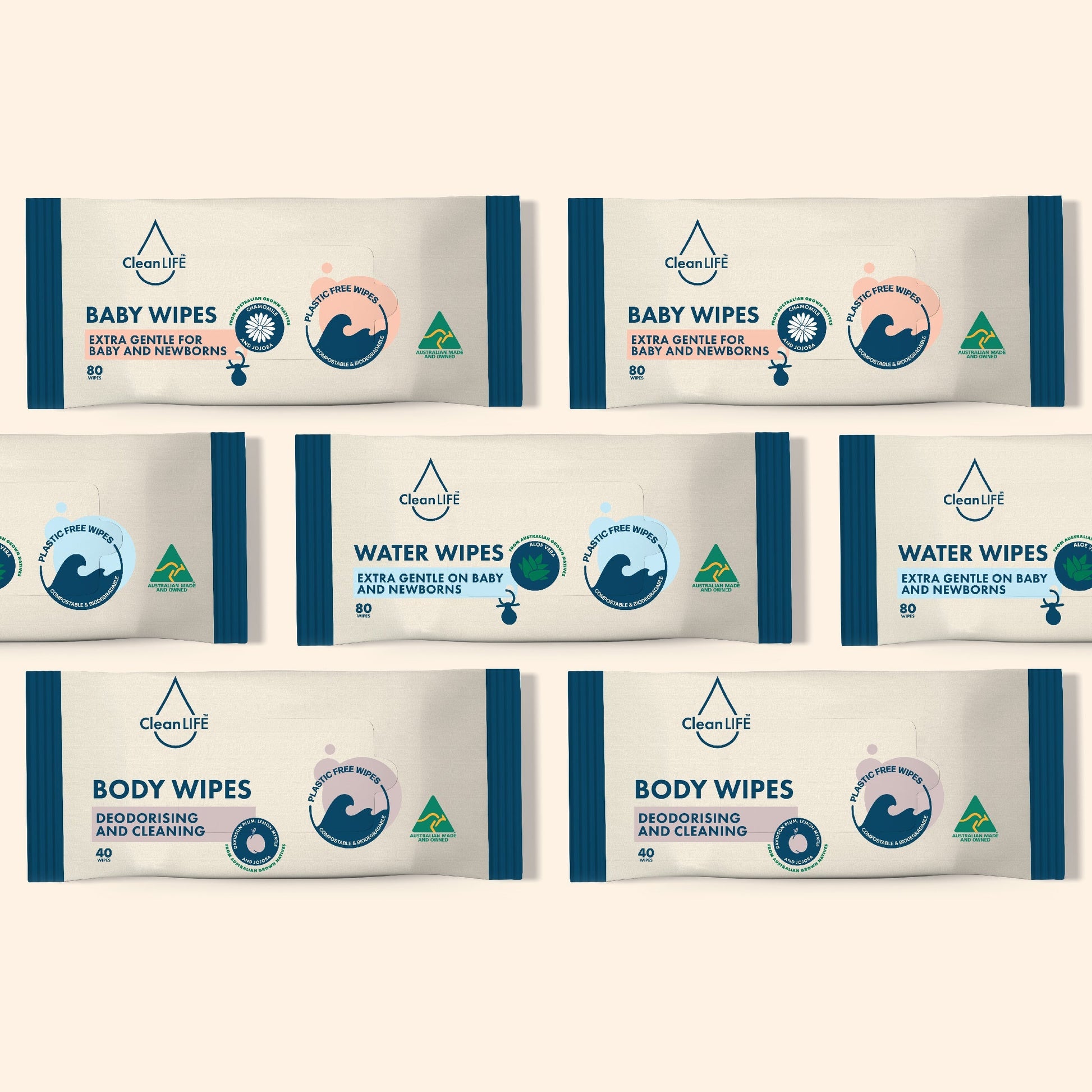 CLEANLIFE Water Plastic Free Wipes Extra Gentle Baby and Newborns 80pk