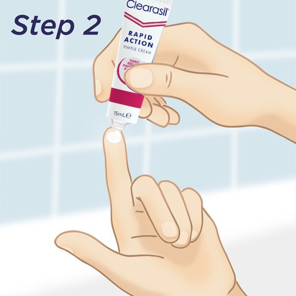Clearasil® RAPID ACTI PIMPLE CREAM VISIBLY REDUCES PIMPLE SIZE & REDNESS IN AS LITTLE AS 4 HOURS. PENETRATES DEEP INTO THE PORES TO HELP CLEAR PIMPLES