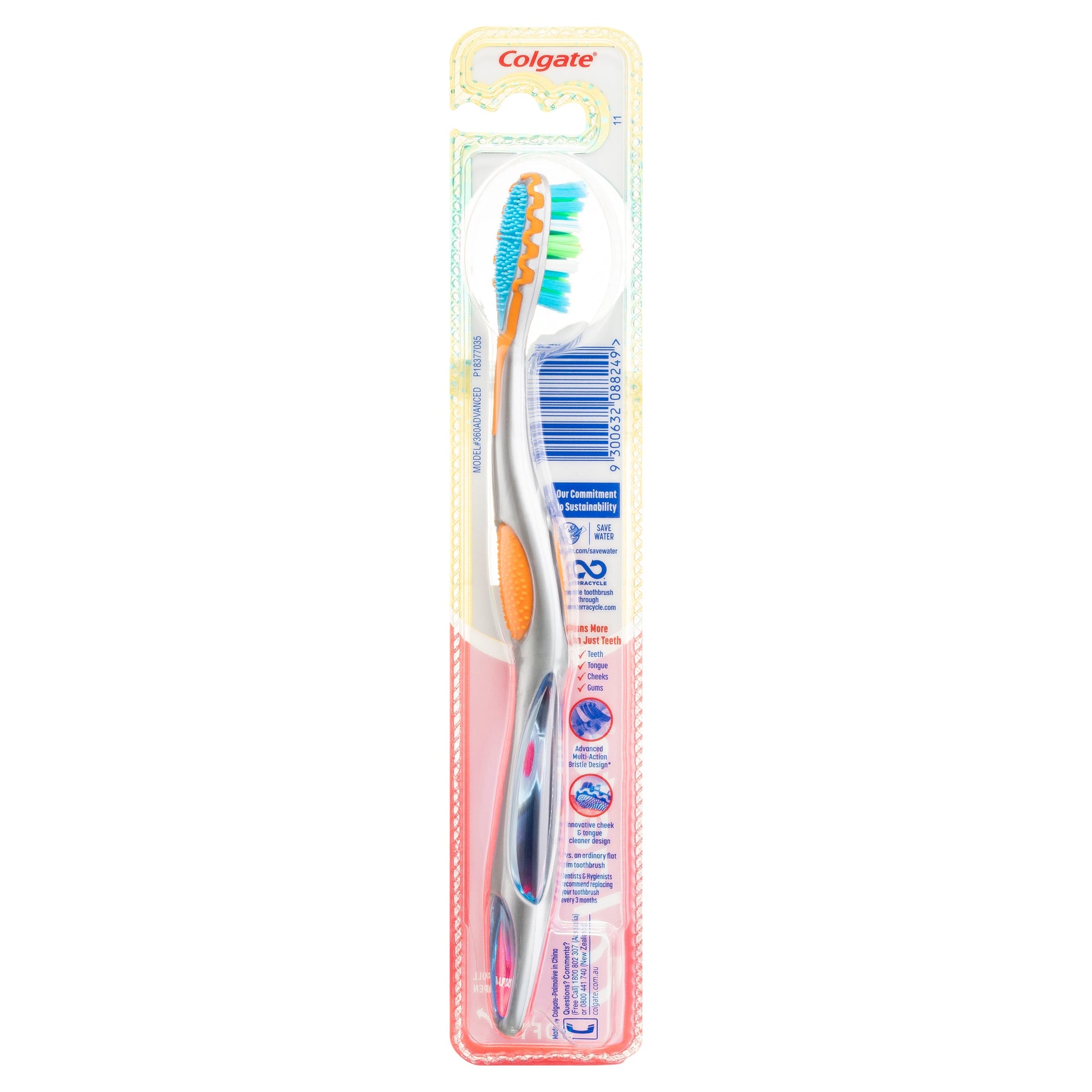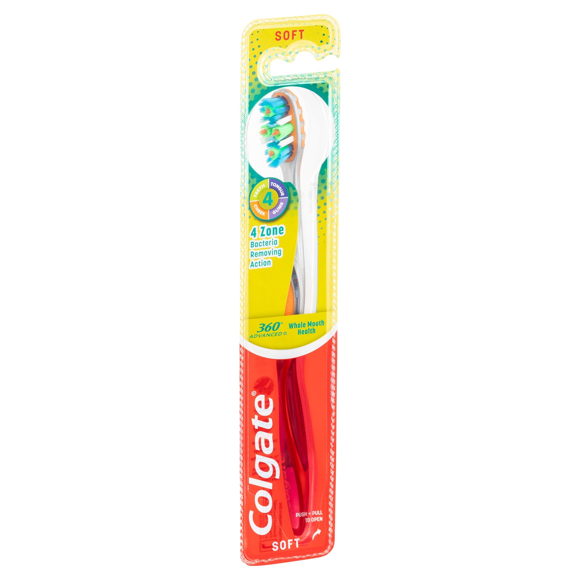 Colgate 360° Advanced Toothbrush has 4 zones of bacteria removing action for whole mouth health. The Soft Compact Head Toothbrush removes bacteria from teeth, tongue, cheeks and gums.