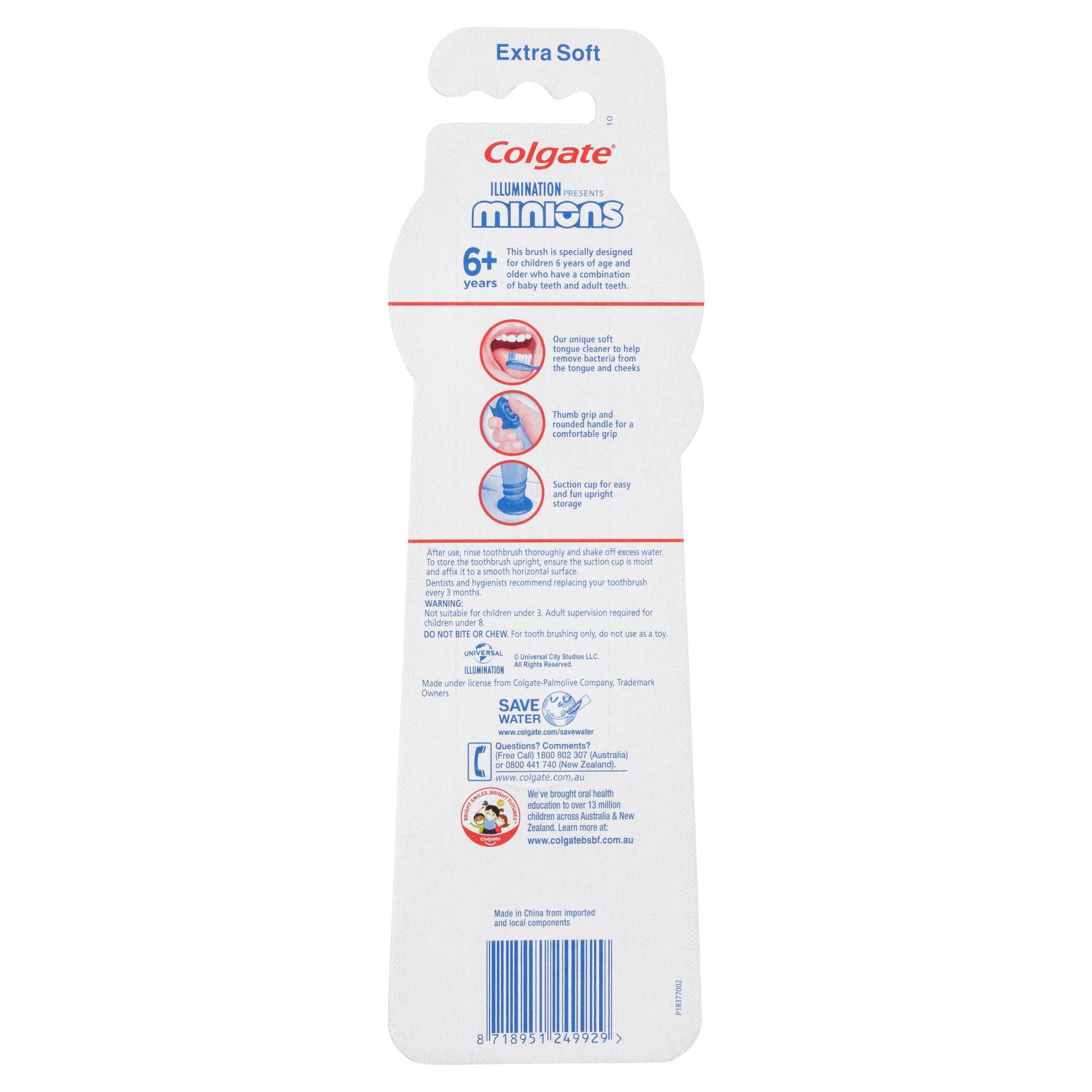 • Colgate Kids Minion Toothbrushes for Children 6+ years.• Soft tongue cleaner to help remove bacteria from the tongue and cheeks.