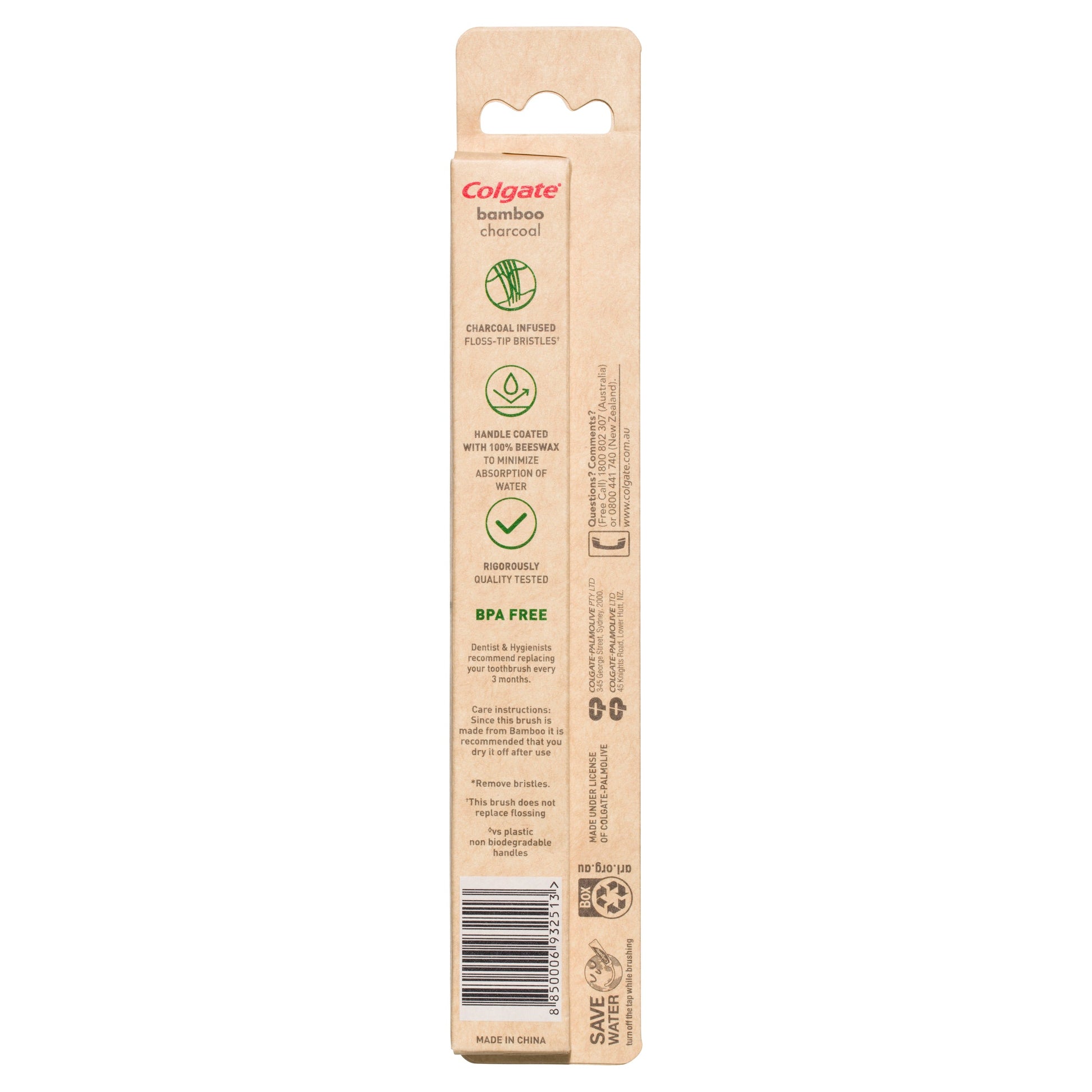 • Colgate Bamboo Charcoal Toothbrush is soft and 100% biodegradable (remove bristles) with a bamboo handle.• Brush handle Coated With 100% Beeswax. Charcoal Infused floss-tip bristles.