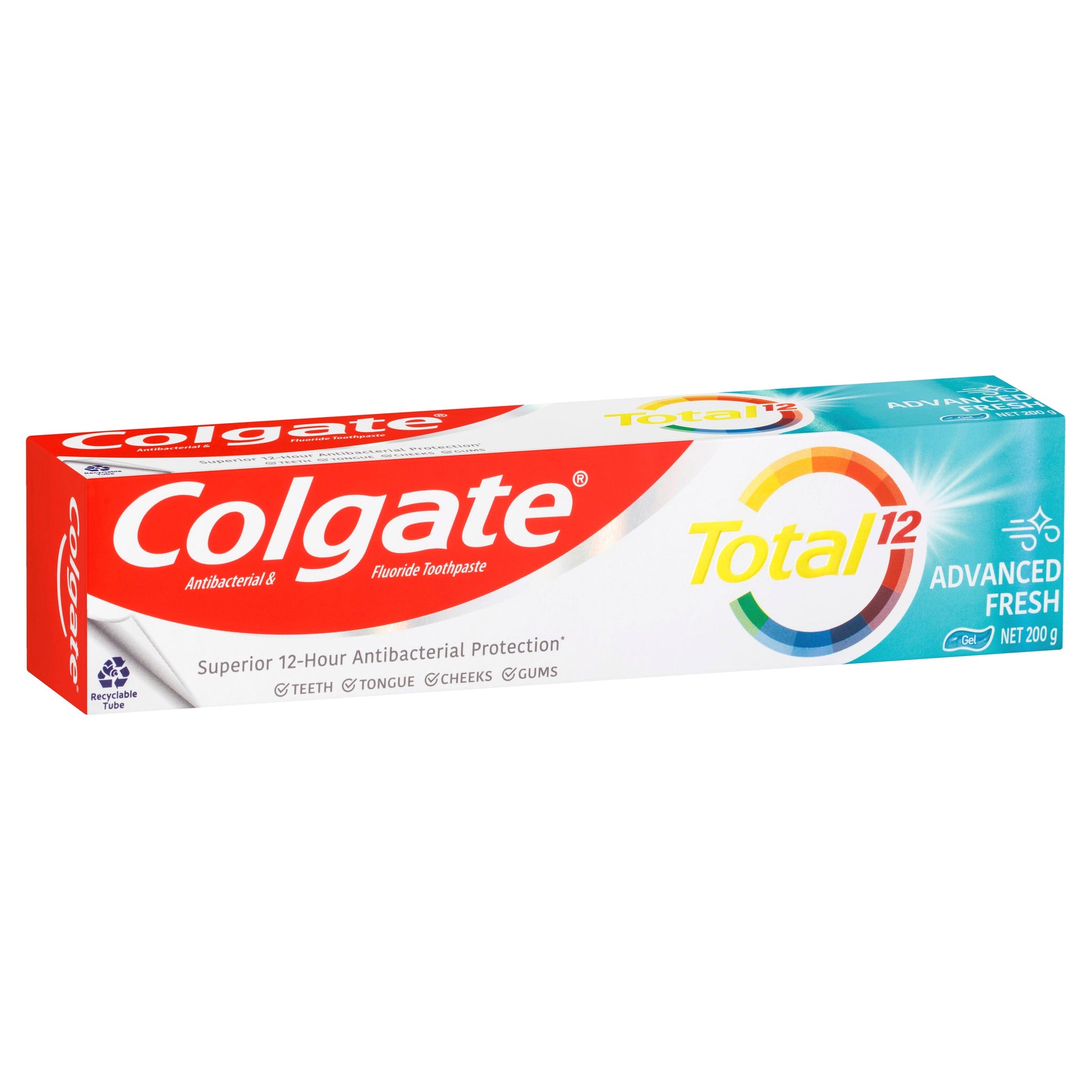 Having fresh breath gives you the confidence to connect with the world around you. That’s why Colgate Total Advanced Fresh antibacterial fluoride gel toothpaste’s unique formula helps fight bacteria which can be a cause of bad breath – not just on teeth, but also your tongue, cheeks, and gums for 12 hours.with 4 weeks of continuous use