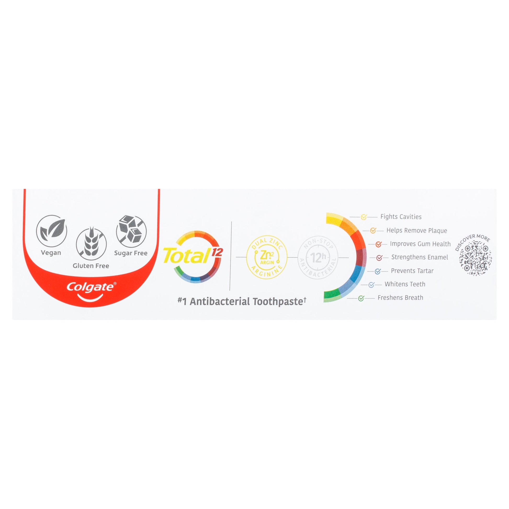 • Brushing with Colgate Total Toothpaste will help improve your teeth, tongue, cheeks and gum health. Advanced toothpaste technology that proactively protects your whole mouth.• Antibacterial fluoride toothpaste fights bacteria on not just teeth, but also your tongue, cheeks and gums for 12 hours (with 4 weeks of continuous use).
