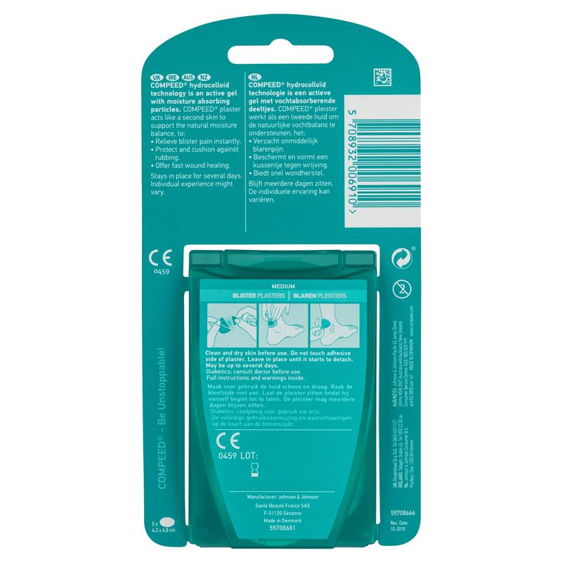 Compeed originated from wound healing treatments used by the military. The hydrocolloid technology is ideal for treating blisters, whether they are caused by running, new shoes, wearing shoes you haven't worn in a while or by just being on your feet all day. Compeed is the Nº1 brand to treat blisters which is why it's trusted by millions of consumers worldwide