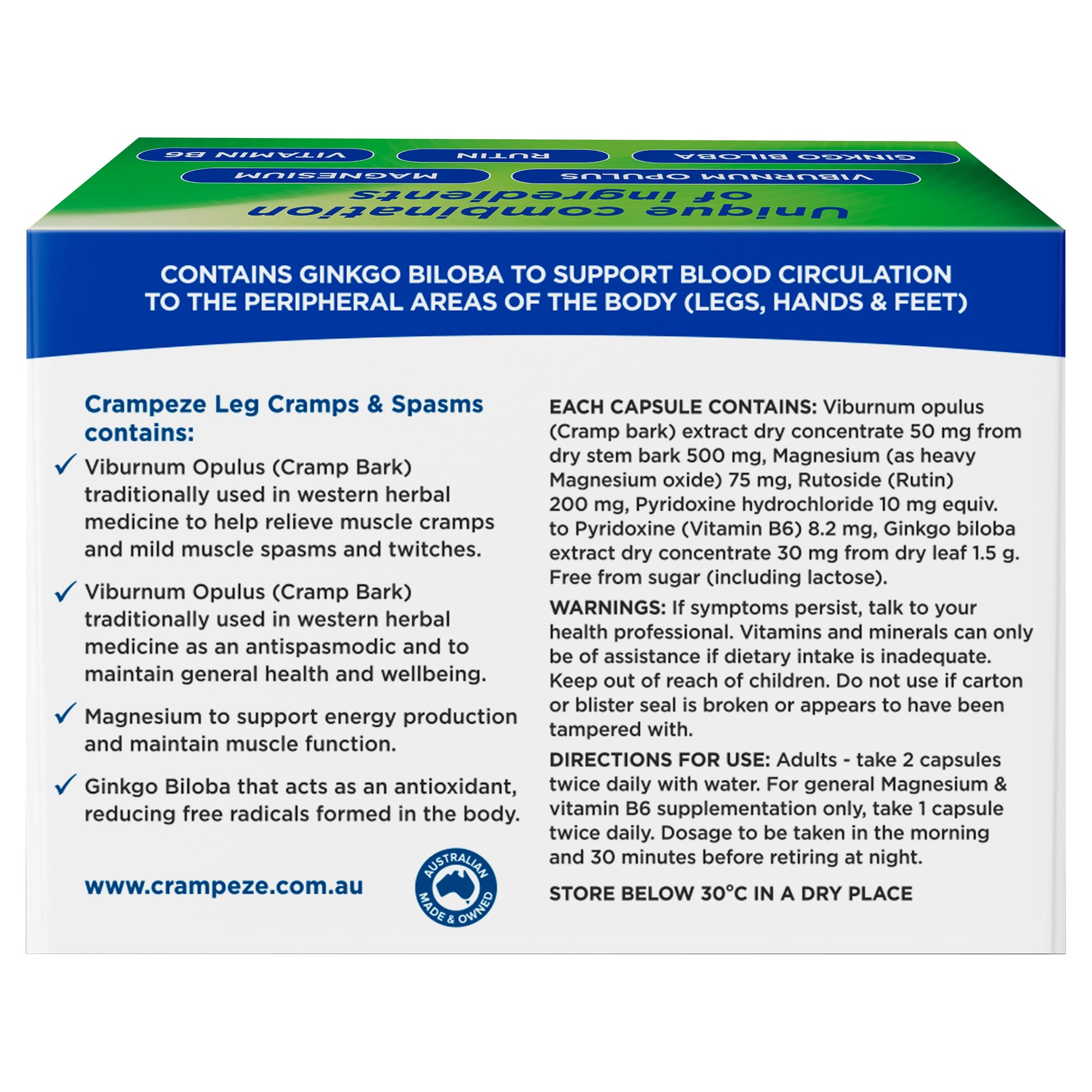 Crampeze Night Cramps Capsule a dietary supplement that contains Viburnum Opulus traditionally used in western herbal medicine to help relieve muscle cramps, mild muscle spasms & twitches.