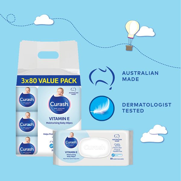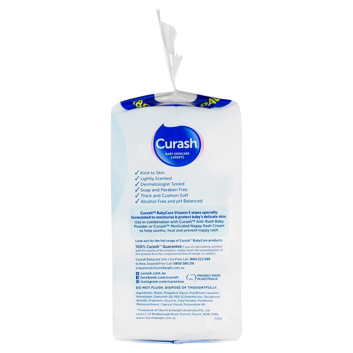 Curash Vitamin E Baby Wipes are developed with your baby’s delicate skin in mind. They are lightly scented and specially formulated baby wipes to moisturise and protect baby's delicate skin.Helps Protect Against Nappy Rash