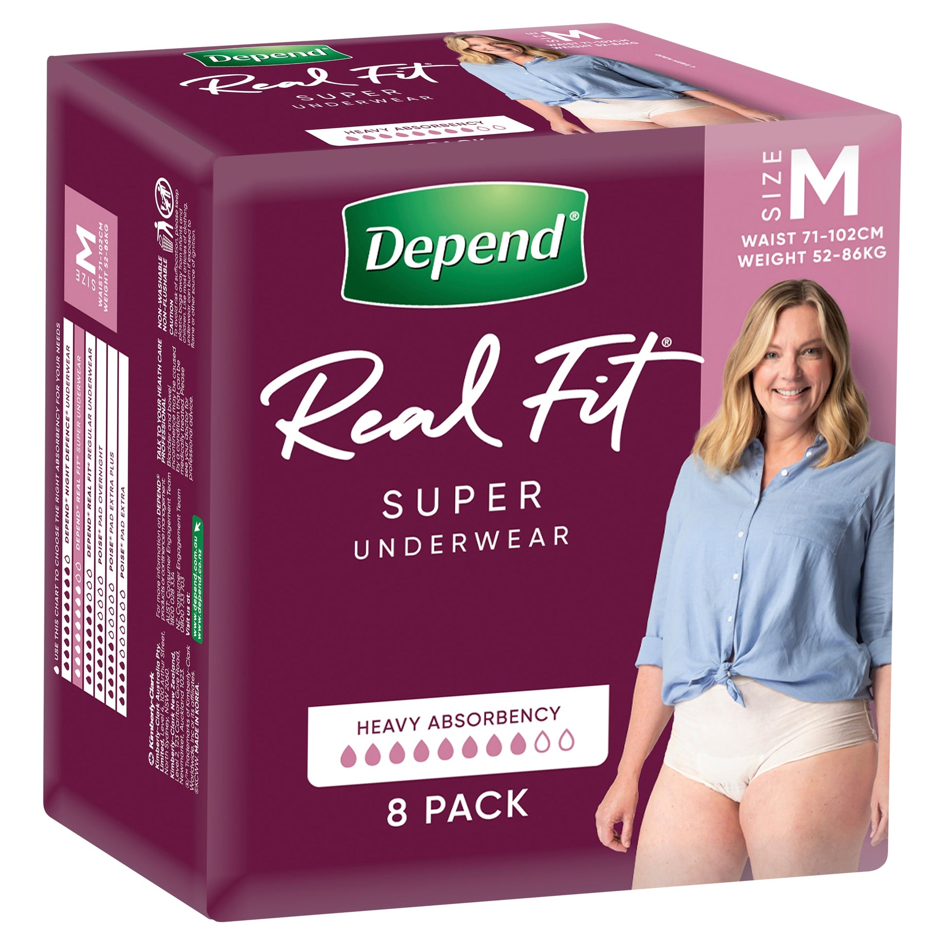 • Depend Real-Fit Super for women disposable underwewar is 60% more absorbent than Regular Depend Real-Fit underwear making it ideal for heavy bladder leakage and overnight protection