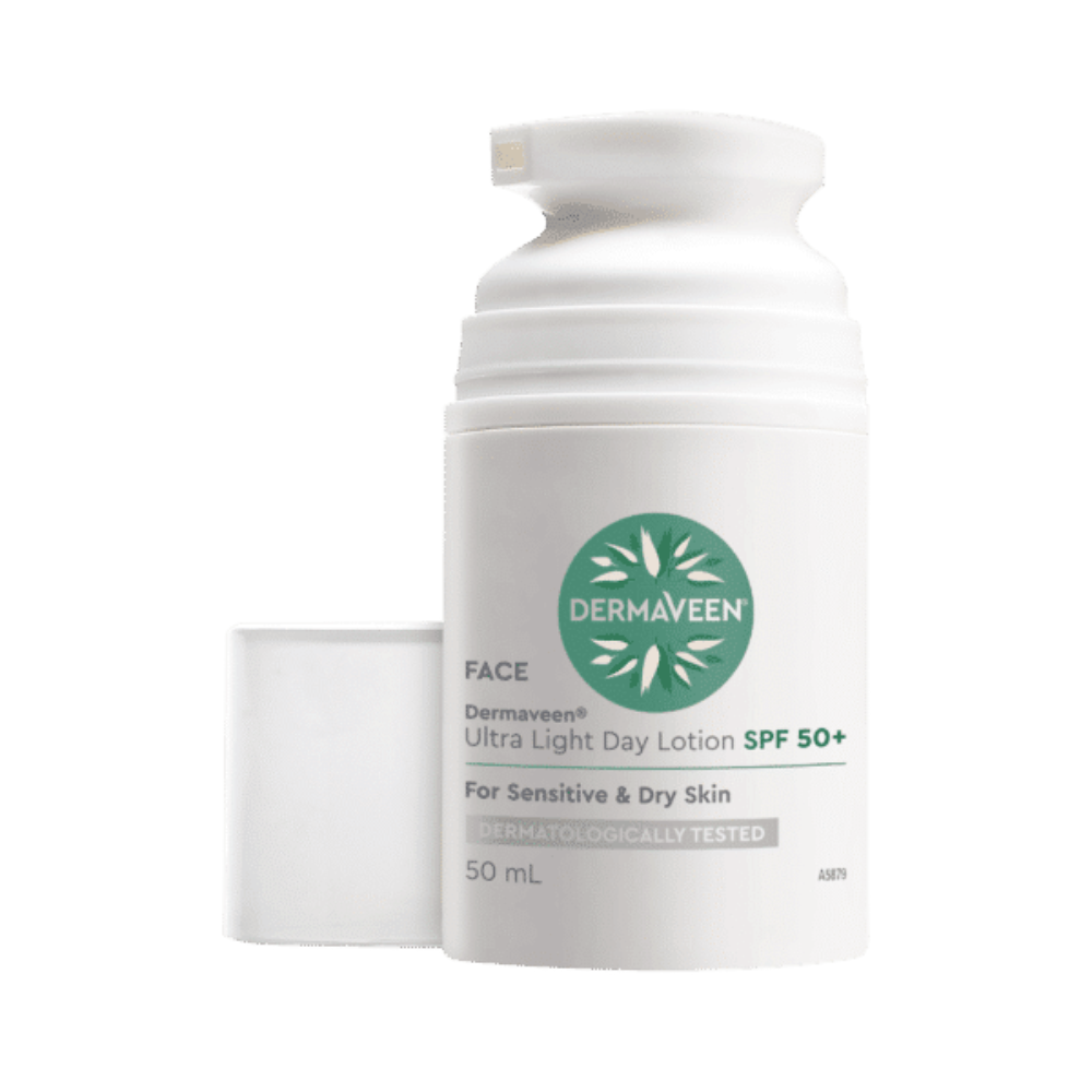 DermaVeen® Ultra Light Day Lotion SPF50+ is specifically designed for daily use to protect sensitive and dry skin.