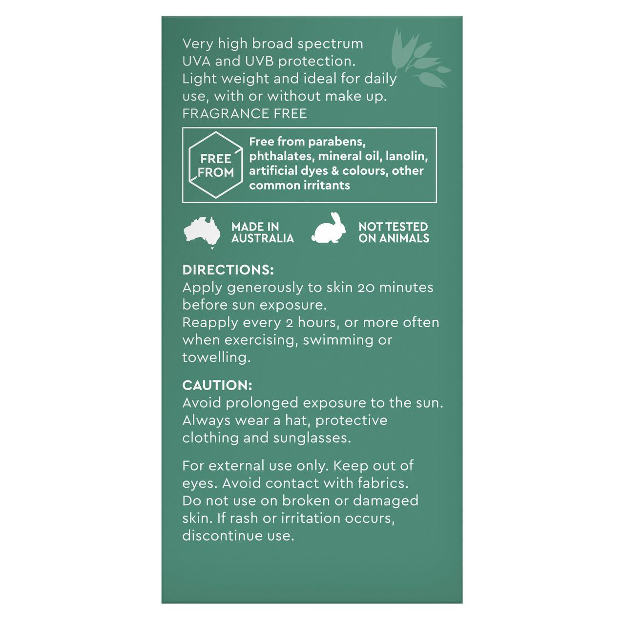Dermatologically Tested. Not tested on animals. Made in Australia. Vegan Friendly.