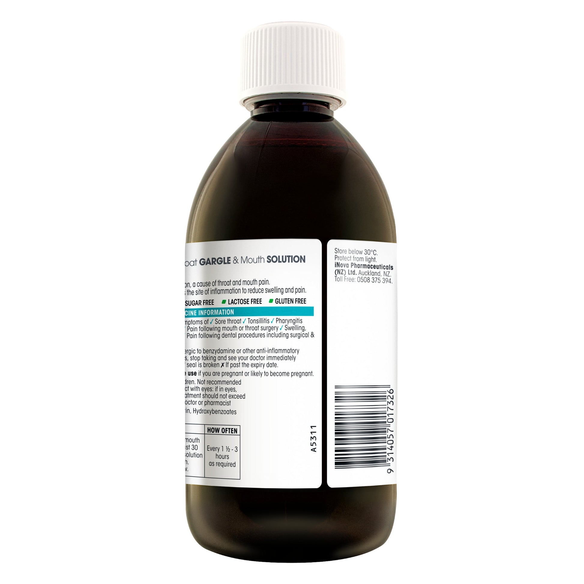 Adults and children over 6 years: 15mL to be gargled or used as a mouth rinse every 1½ - 3 hours. Hold in the mouth for 30 seconds. Solution should be expelled from mouth after use.