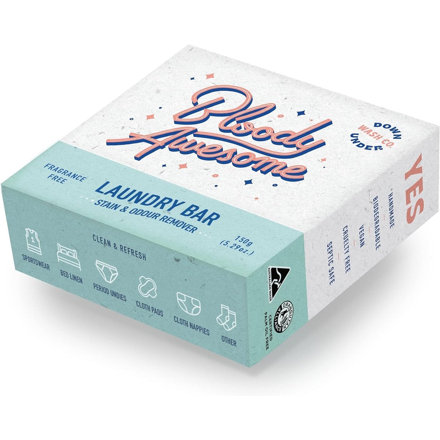 Downunder Wash Co. (Bloody Awesome) Laundry Bar Stain & Odour Remover Fragrance Free 150g