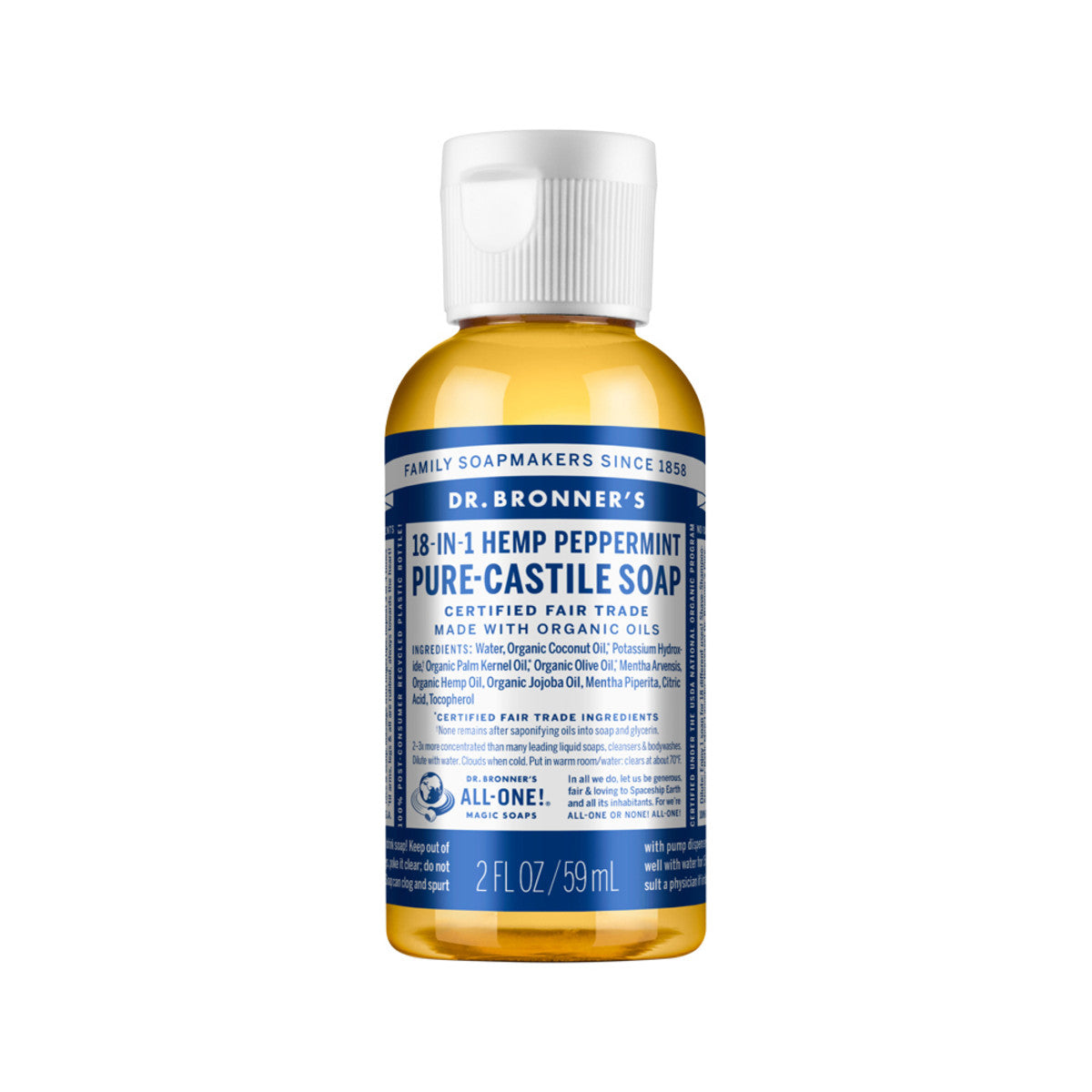 Dr. Bronner's Pure-Castile Soap Liquid (Hemp 18-in-1) Peppermint 59ml