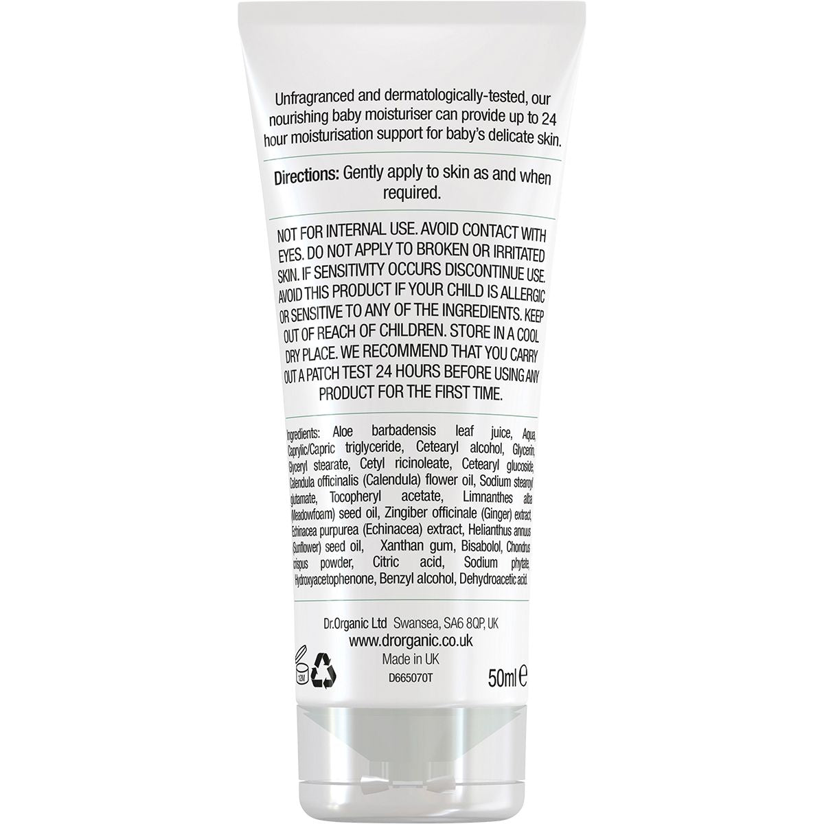 DR ORGANIC Unfragranced Baby Moisturiser Organic Calendula 50ml