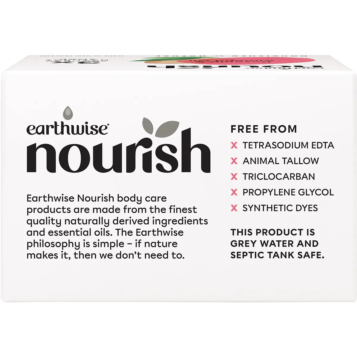 FREE FROM Tetrasodium EDTA, Animal Tallow, Triclocarban, Propylene Glycol, and Synthetic Dyes.
