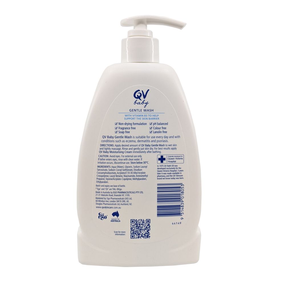 QV Baby Gentle Wash is a moisturising soap-free daily wash, suitable for use every day for hair and body on delicate or sensitive skin. QV Baby Gentle Wash is Paediatrician recommended.