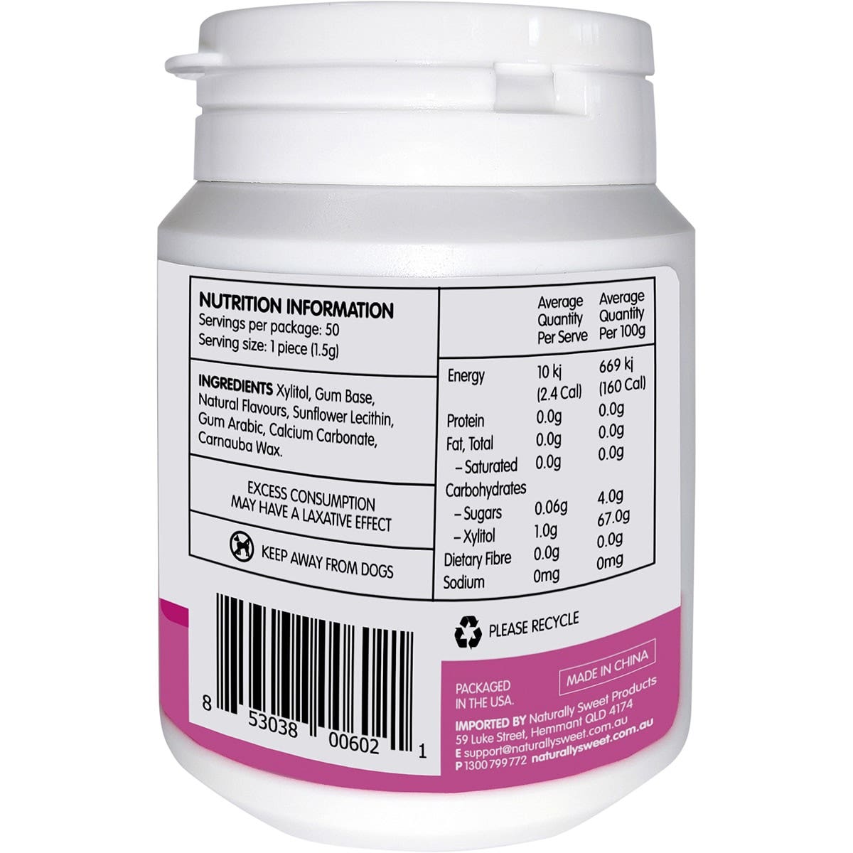 Xylitol, Gum Base, Natural Flavours, Sunflower Lecithin, Gum Arabic, Calcium Carbonate, Carnauba Wax.