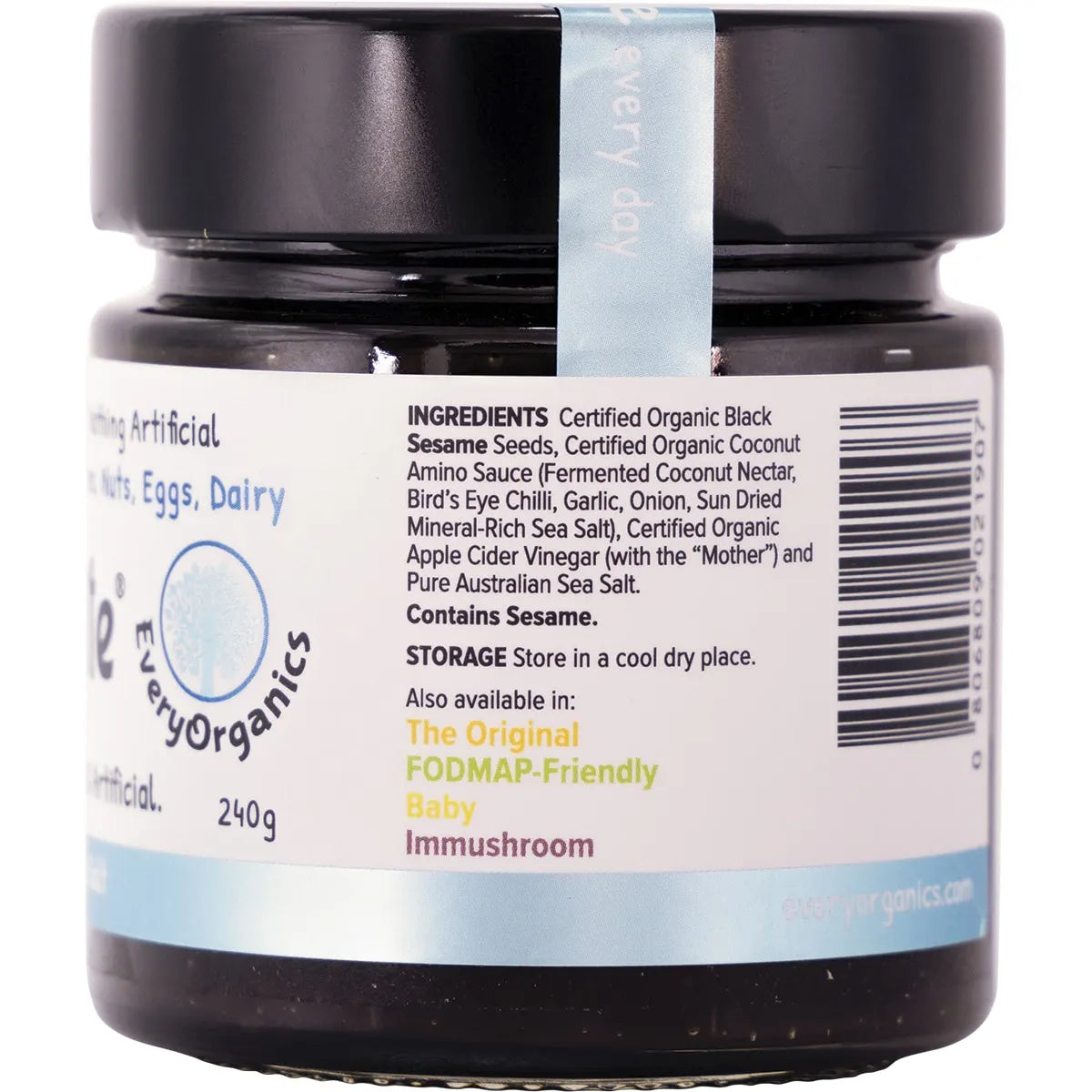 Certified Organic Black Sesame Seeds, Certified Organic Coconut Amino Sauce (Fermented Coconut Nectar, Birds Eye Chilli, Garlic, Onion, Sun Dried Mineral-Rich Sea Salt), Certified Organic Apple Cider Vinegar (With The “Mother”), Pure Australian Sea Salt.EVM03CPP
